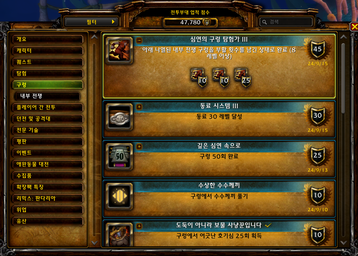 2024.09.15 심연의 구렁 탐험가 III 획득 25점짜리 47780점