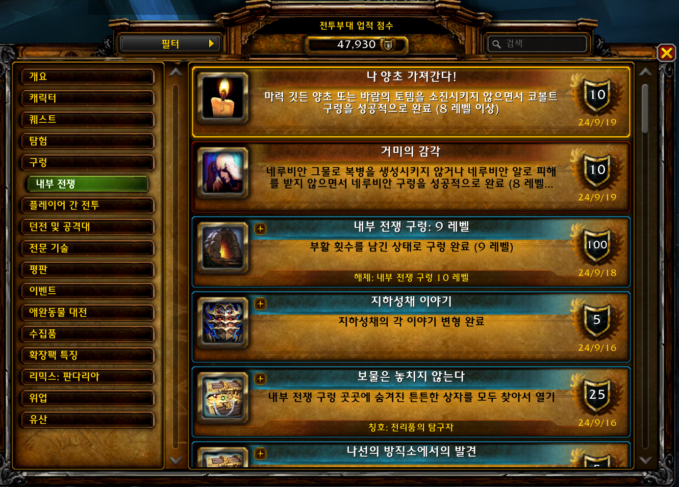 | [와우업적]구렁의 현자: 내부 전쟁 (2) | 2024.09.16 |