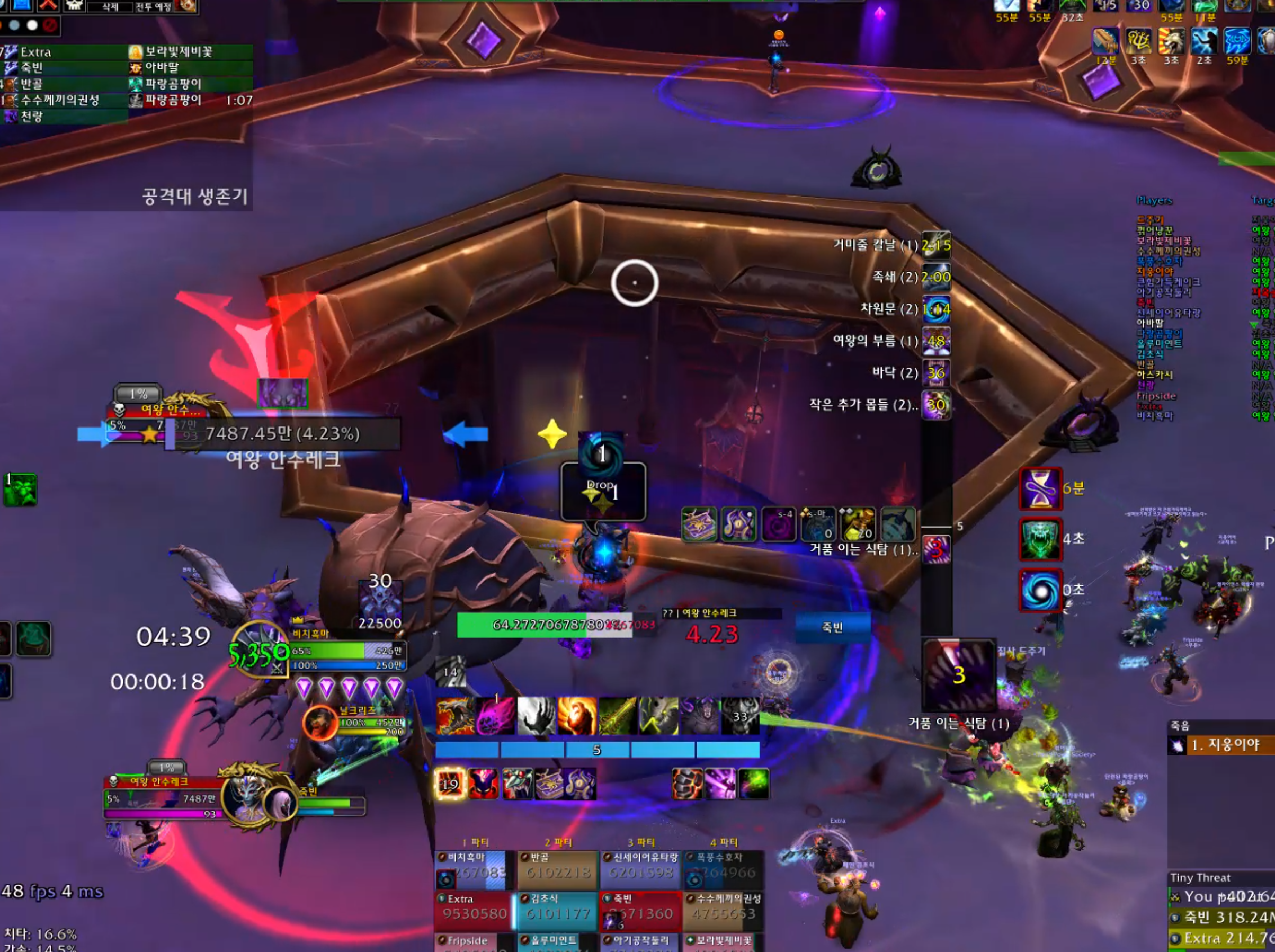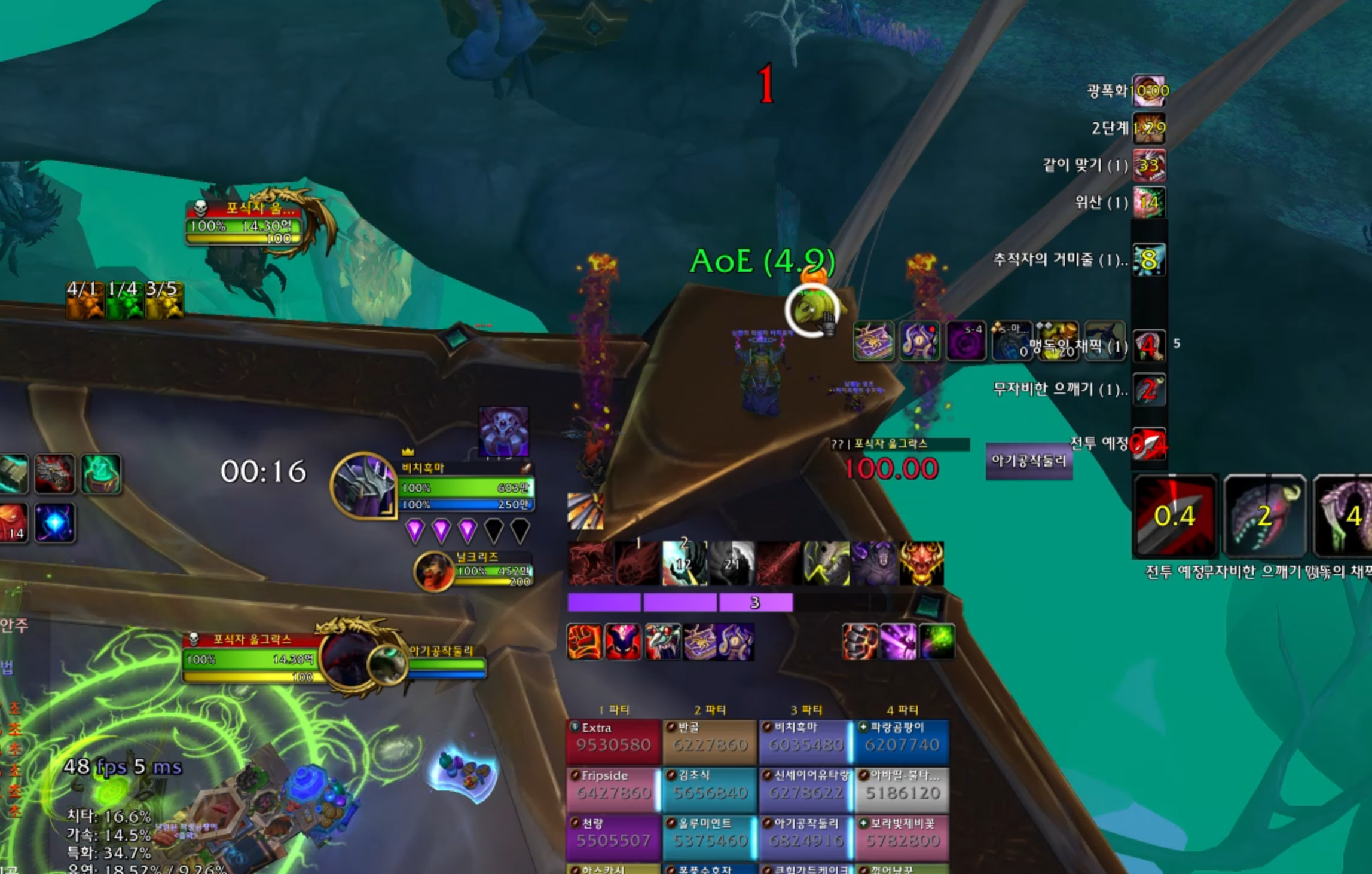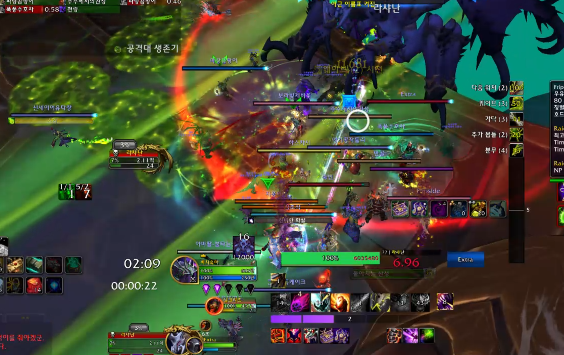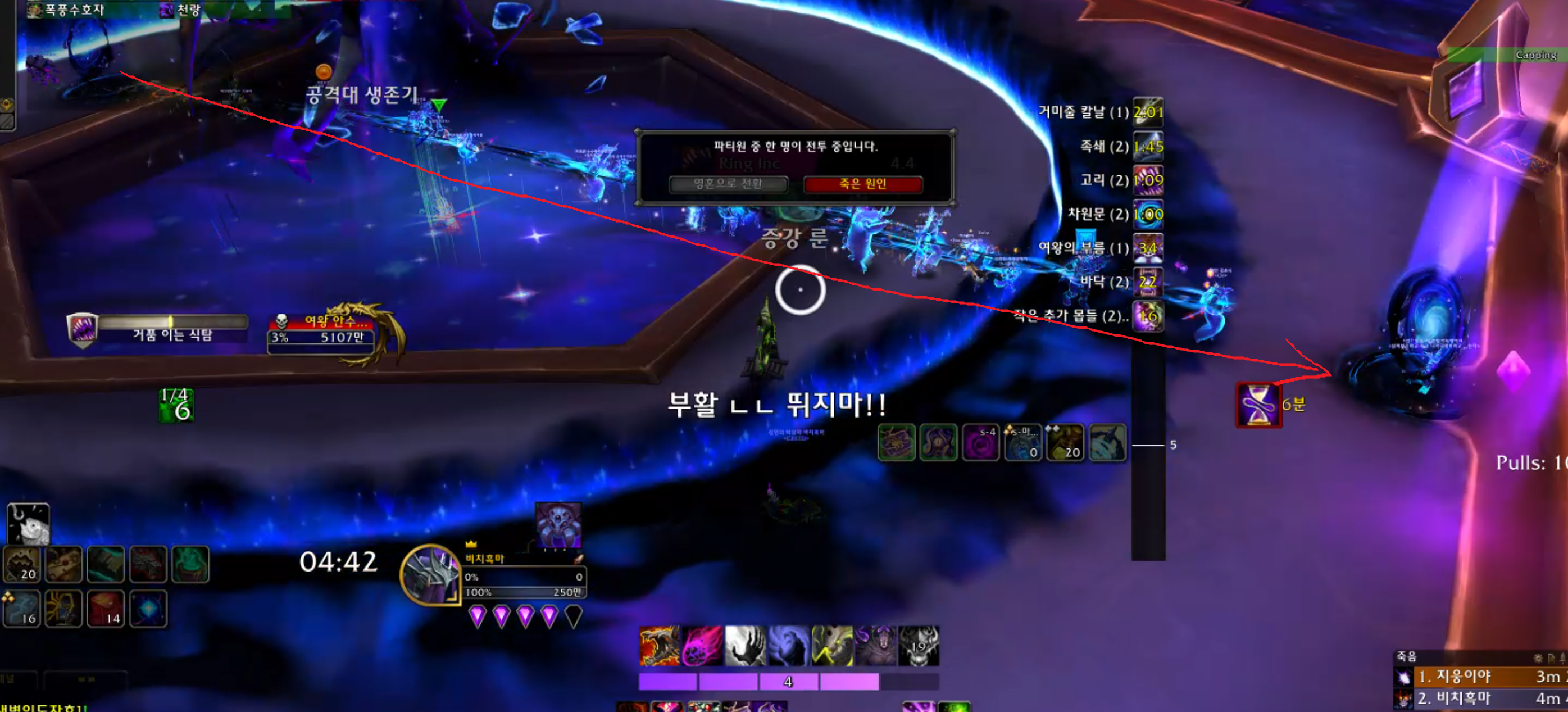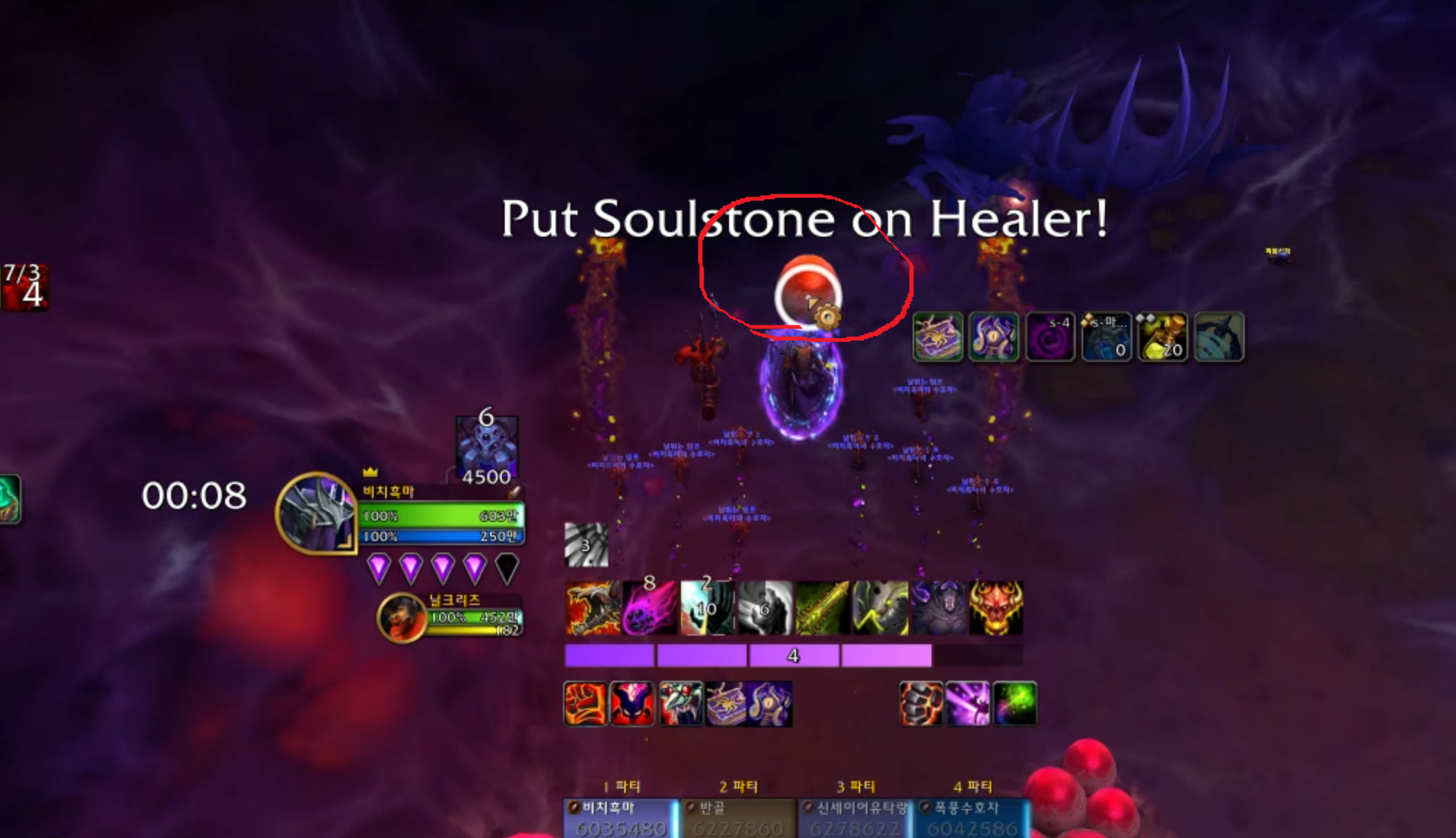원래 4힐인데 힐러2명이 딜스왑이 되서 2힐하고 넴드를 빨리 잡아서 완료하였습니다.