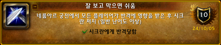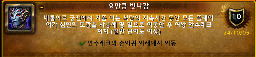 영예의 네룹아르 공격대원 업적은 내부전쟁 업적으로 1시즌 레이드 업적입니다.