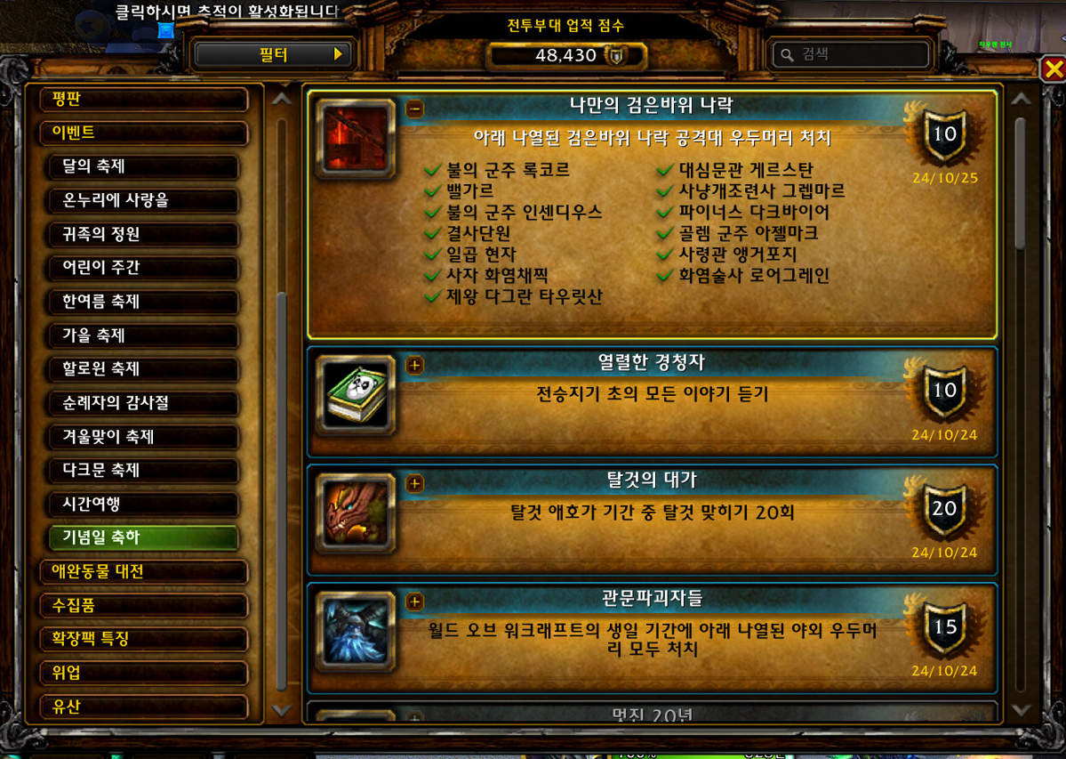나만의 검은바위 나락 업적은 20주년 이벤트 업적입니다.