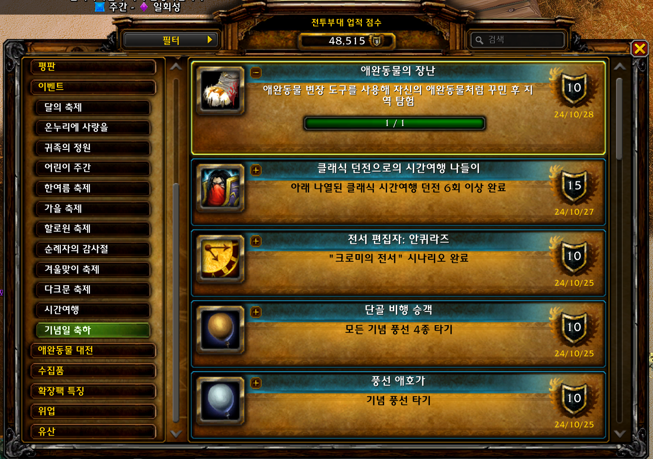 2024.10.28 애완동물의 장난 획득 10점짜리 48515점