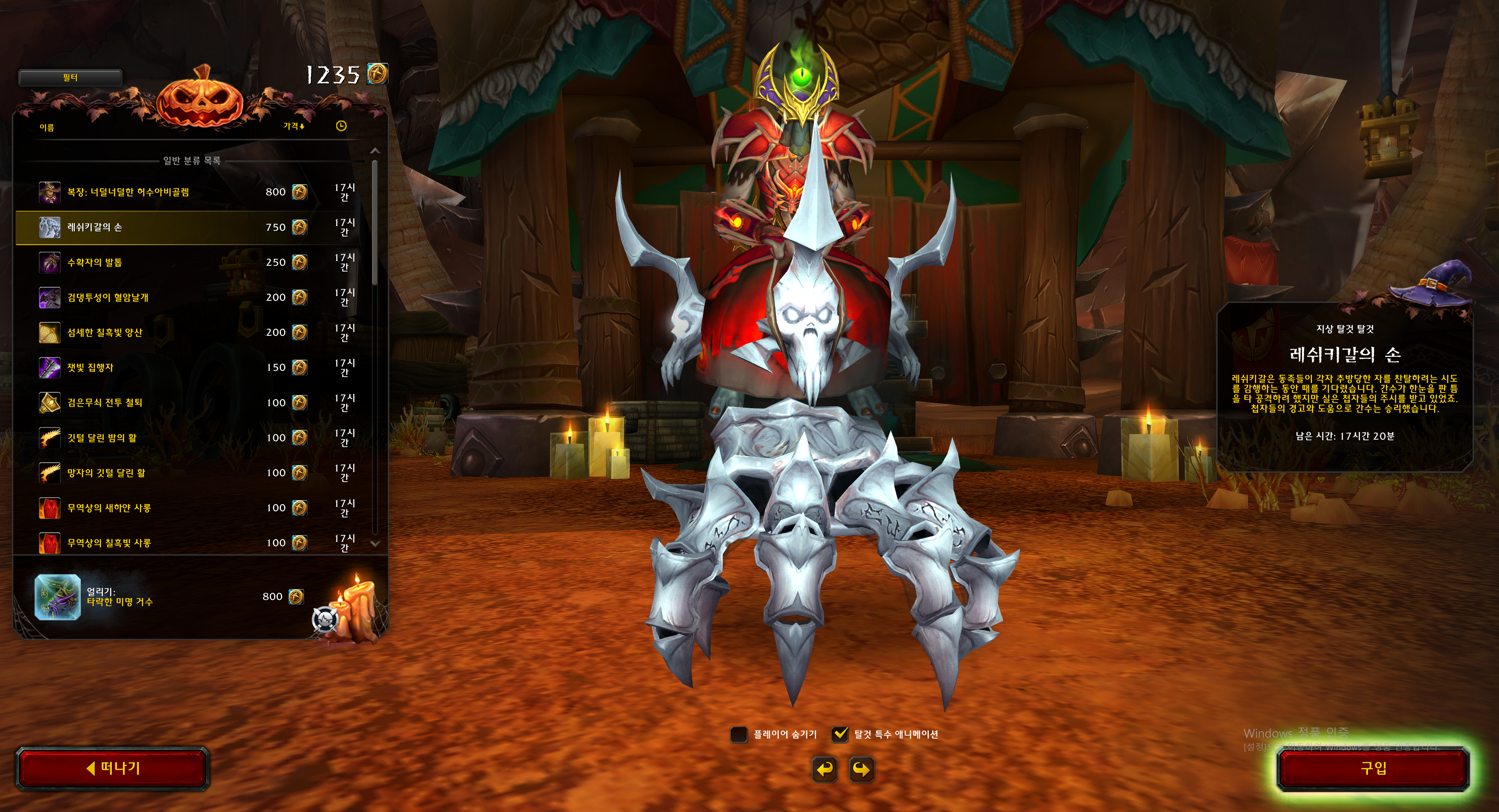 레쉬키갈의 손 탈것은 2024년 10월 교역소 물품입니다.