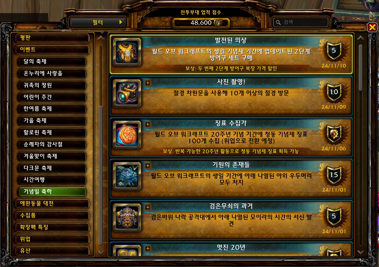 | [와우업적]징표 수집가 (0) | 2024.11.06 |