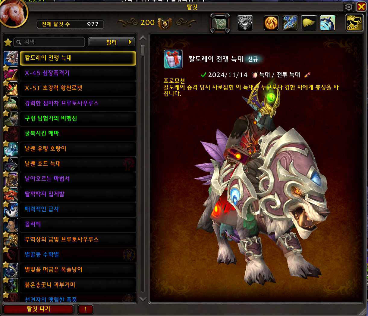 2024.11.14 칼도레이 전쟁 늑대 획득 977번째 탈것
