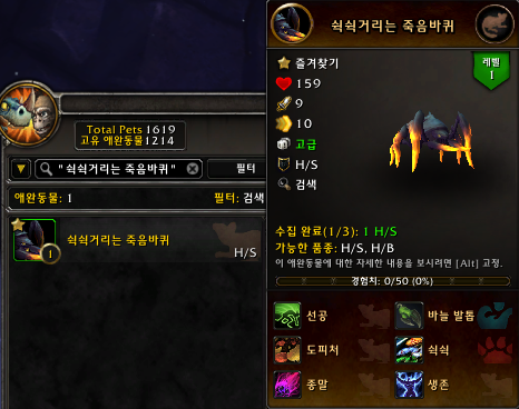 2021.02.07 쉭쉭거리는 죽음바퀴 획득 1214번째 애완동물