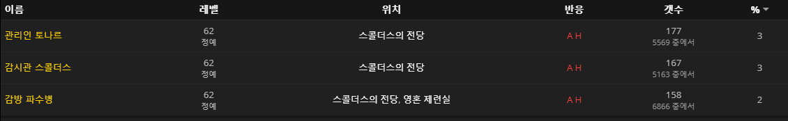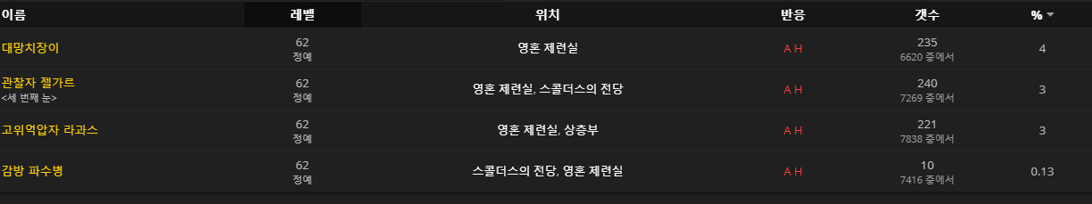 나락 추적자는 대망치장이 / 관찰자 젤가르 / 고위억압자 라과스 / 감방 파수병이 드랍합니다.