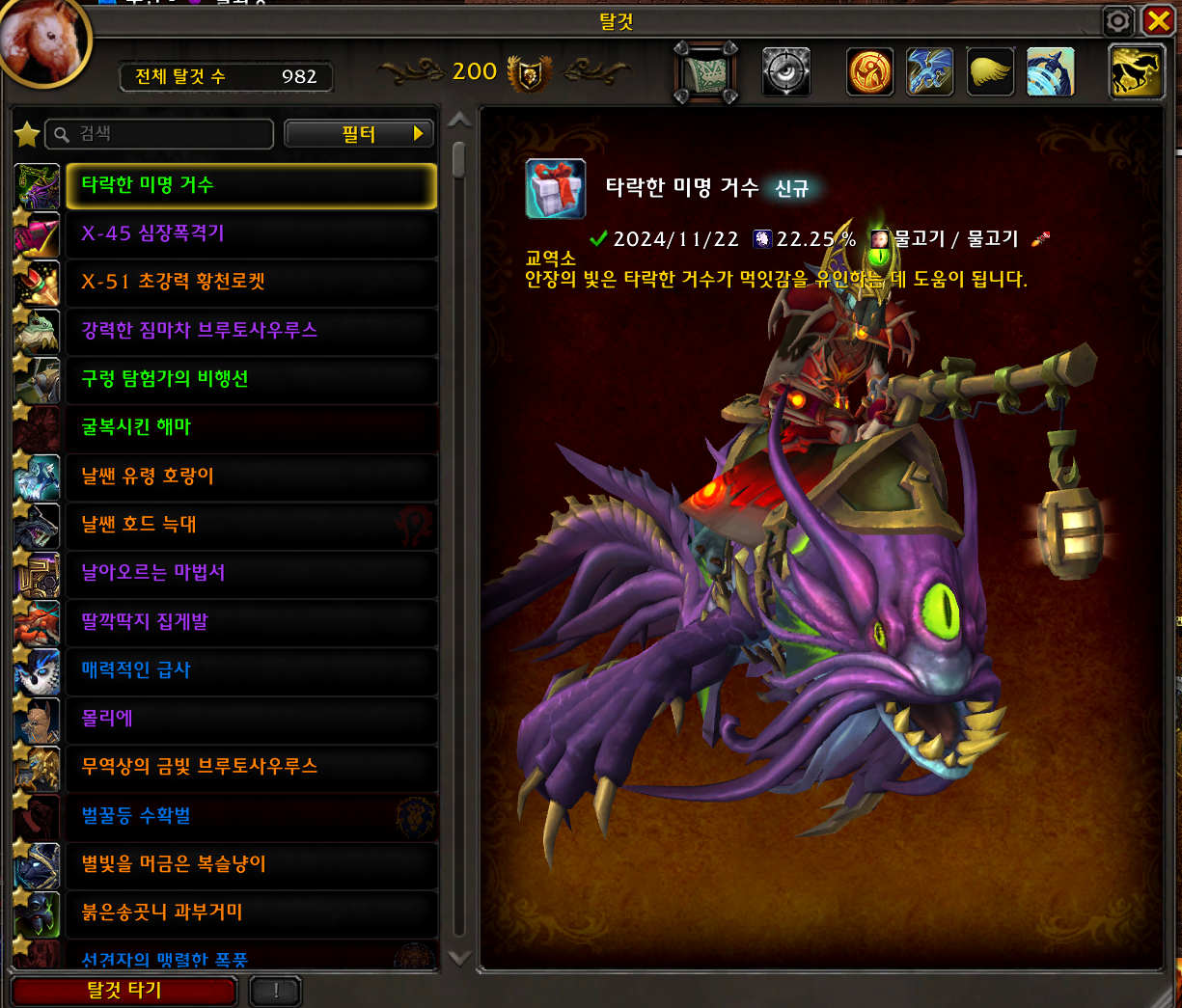 2024.11.22 타락한 미명 거수 획득 982번째 탈것