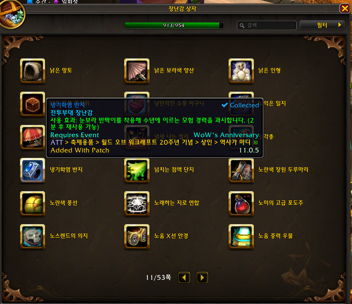 2024.11.26 냉기화염 반지 획득 913번째 장난감