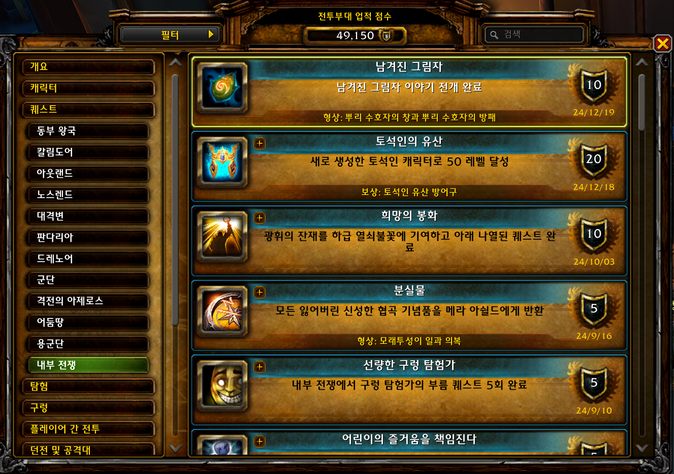 | [와우업적]희망의 봉화 (5) | 2024.10.03 |