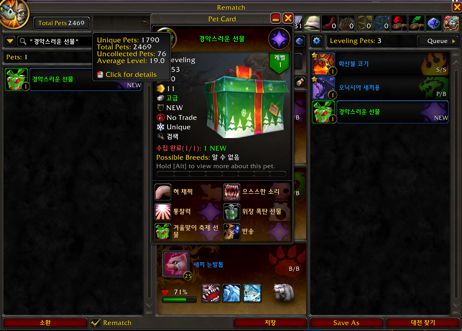 경악스러운 애완동물은 2024년 와우 크리스마스 선물입니다. 오그리마 크리스마스트리 밑에 노란느낌표 상자를 열면 획득 가능합니다.