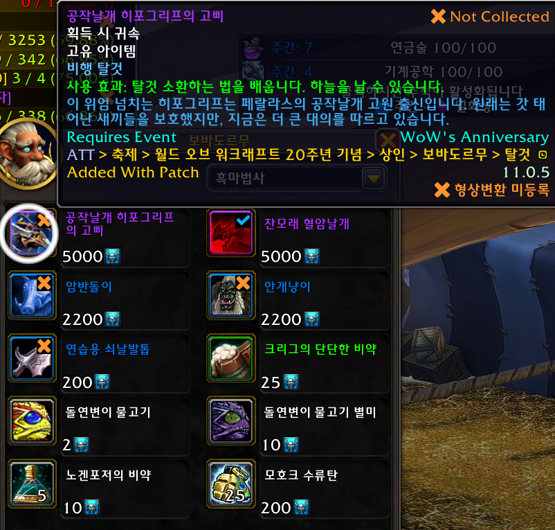 공작날개 히포그리프 탈것은 시간왜곡훈장으로 구매하는 탈것입니다.