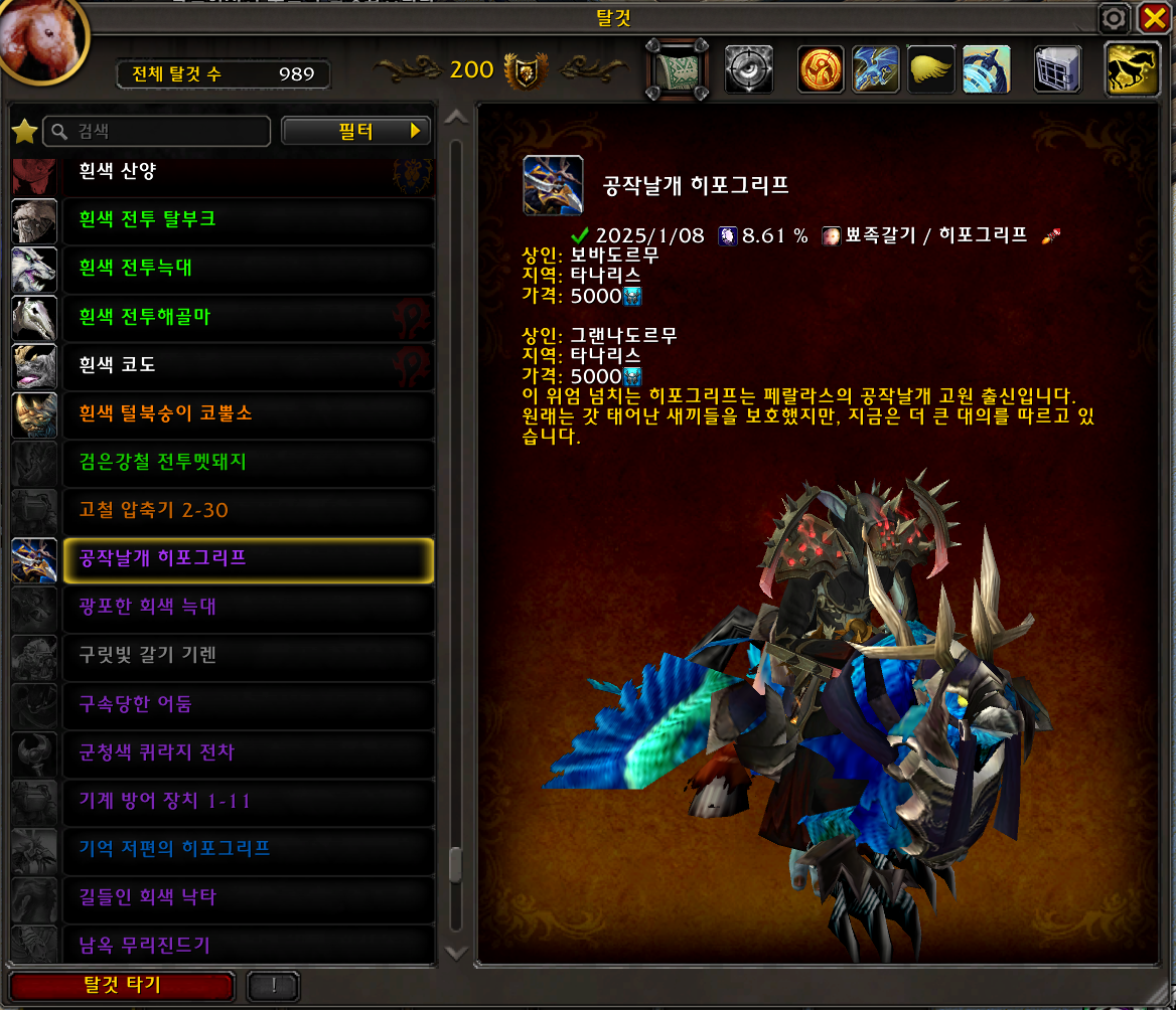 2025.01.08 공작날개 히포그리프 획득 989번째 탈것