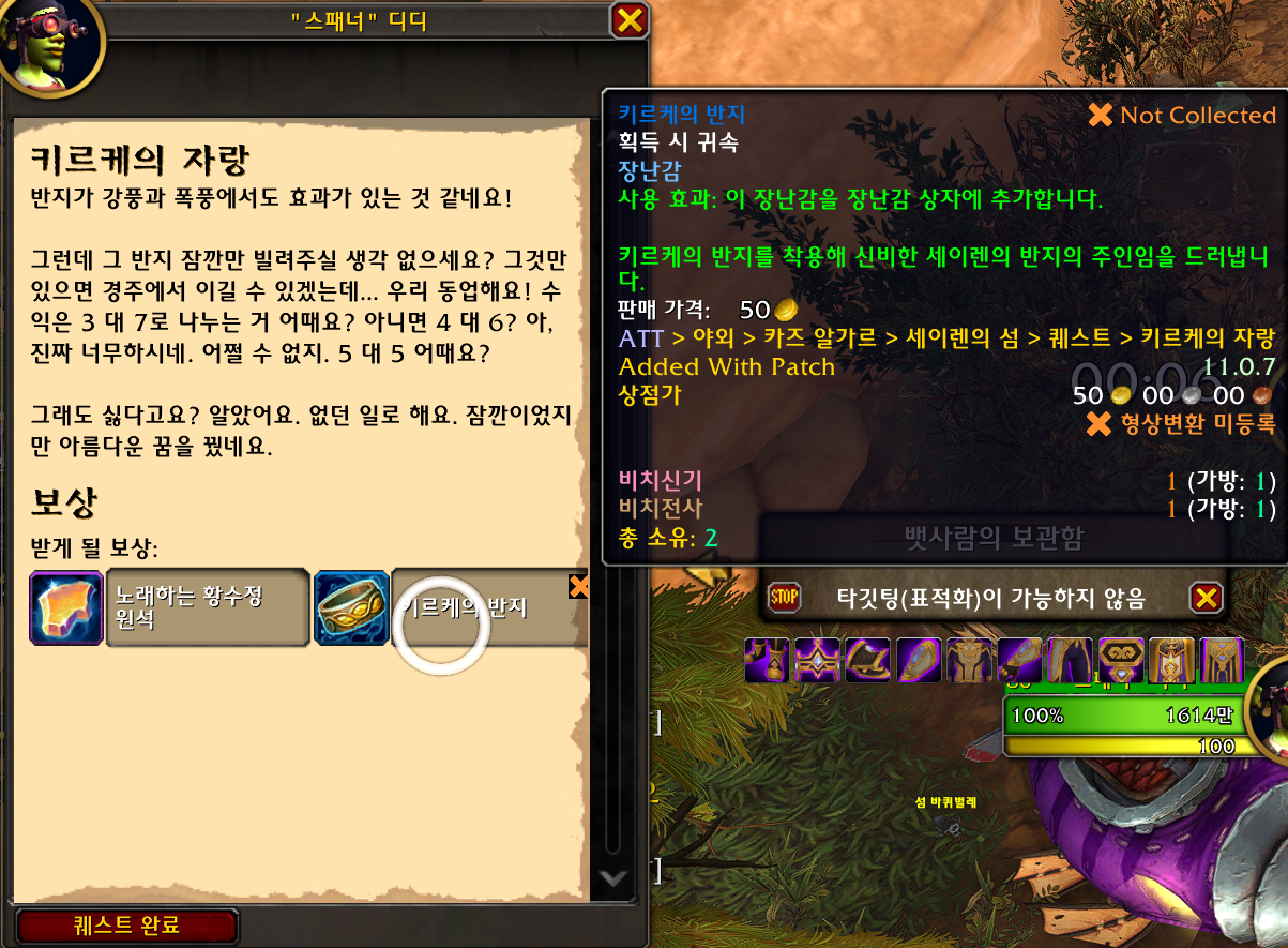 키르케의 반지 장난감은 내부전쟁 확장팩 장난감으로 세이렌의 섬에서 반지업그레이드 퀘스트를 6주동안 진행하면 마지막주에 획득가능합니다.