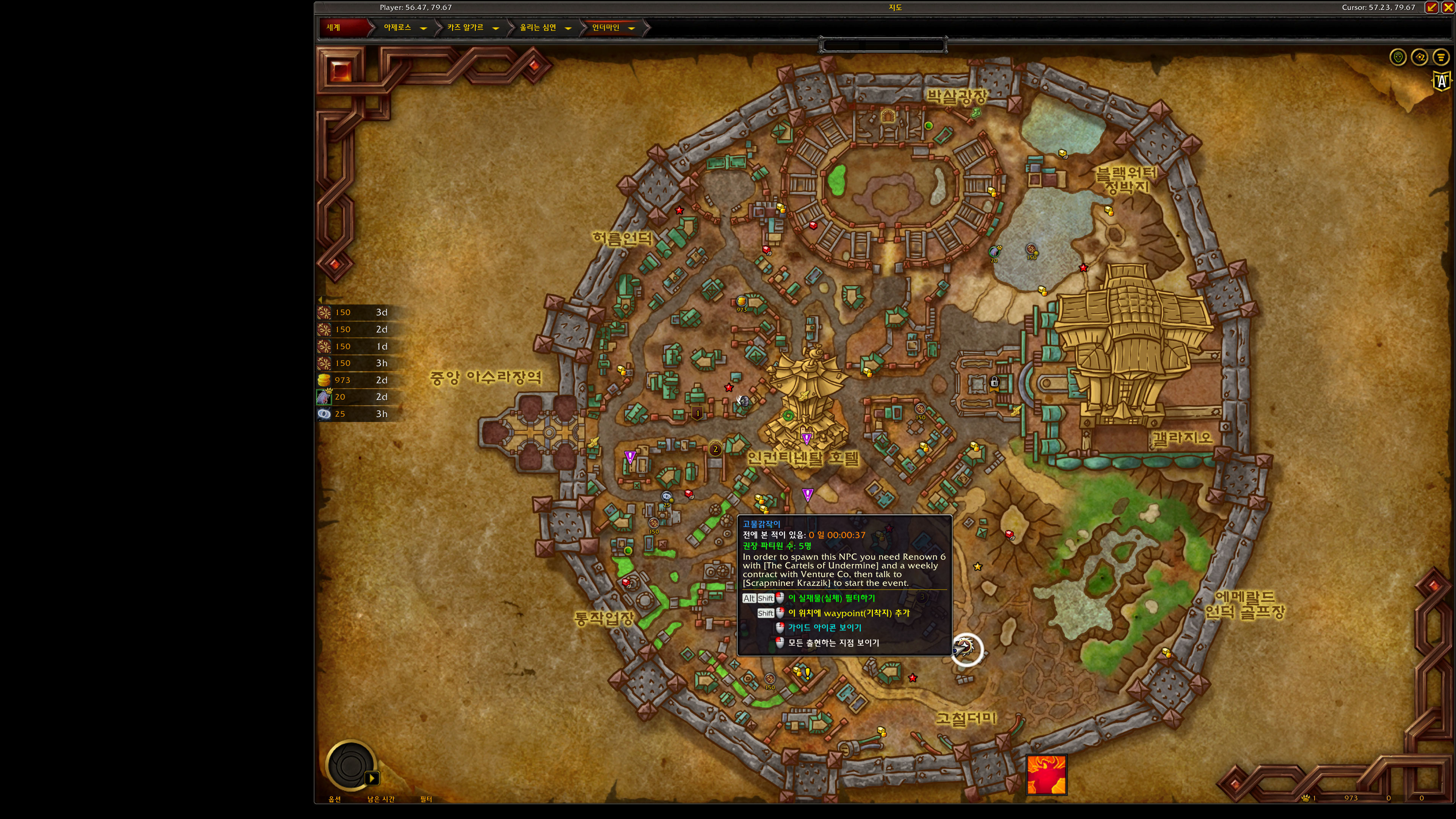 언더미인의 모험가 업적은 내부전쟁 확장팩 업적으로 언더마인에 있는 은테몹 21마리중에 10마리를 잡는업적입니다.
