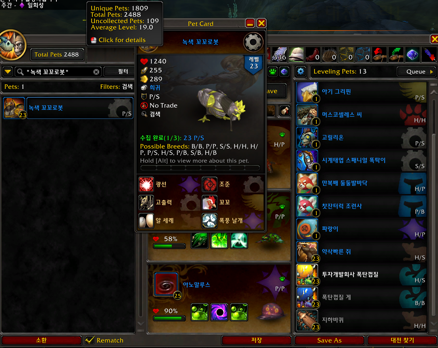 2025.03.02 녹색 꼬꼬로봇 획득 1809번째 애완동물