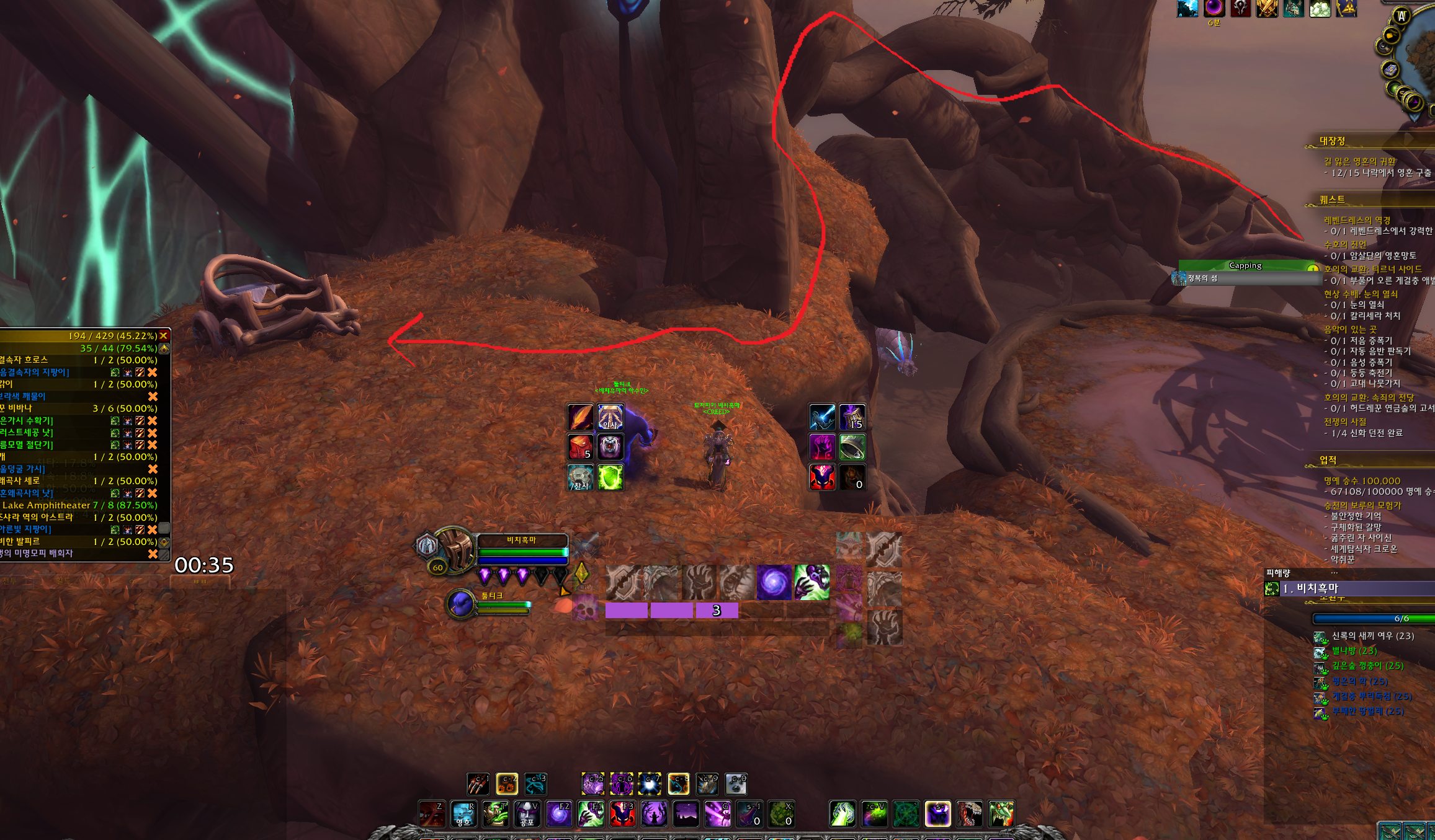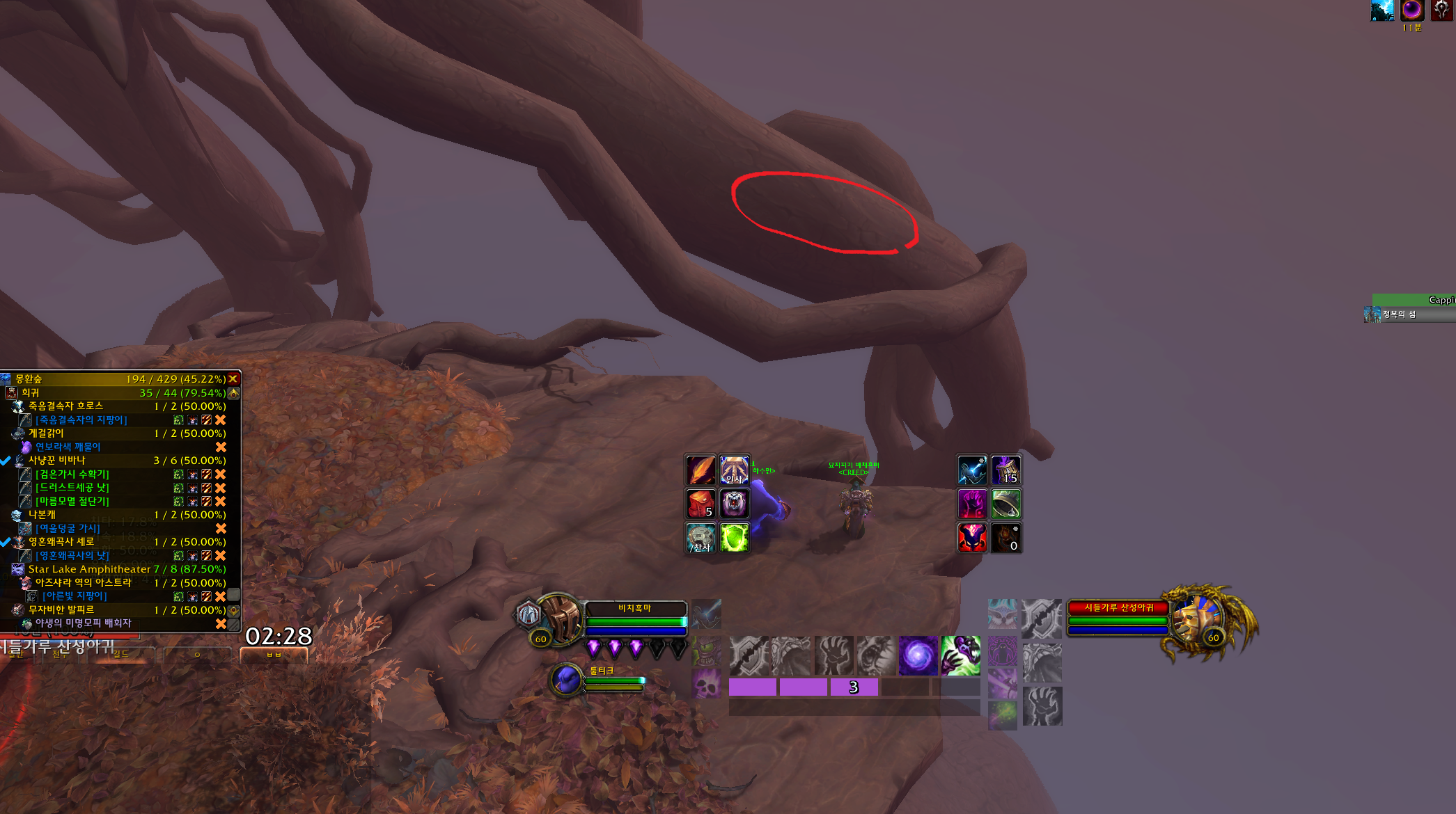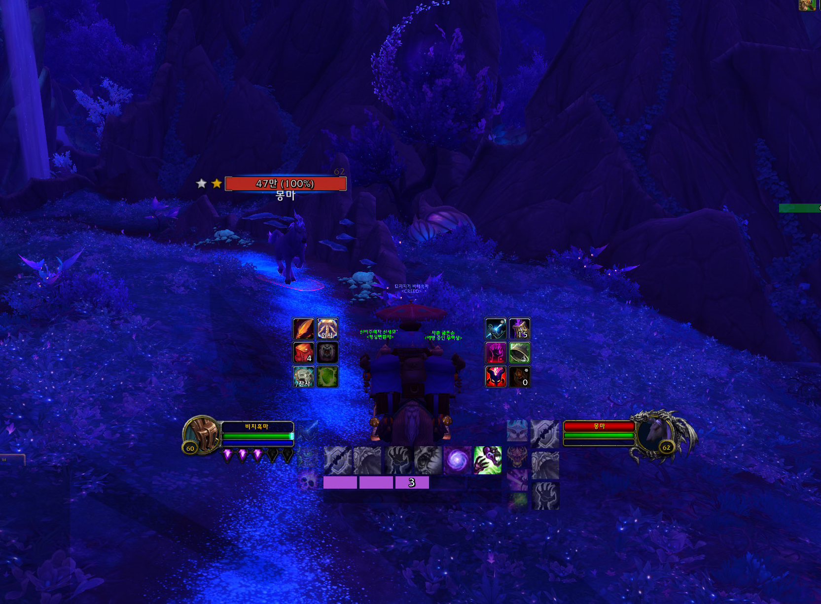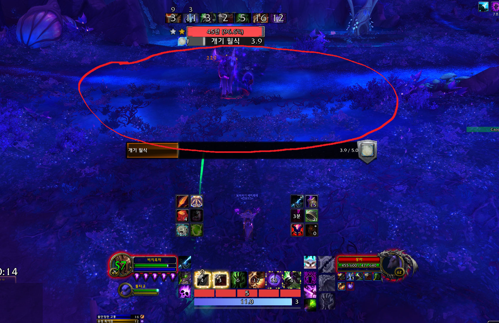 맵이 보라색이라서 잘 안보이는데 개기 월식이라는 스킬을 사용하면서 큰 바닥이 있는데 이것만 주의하시면 됩니다.