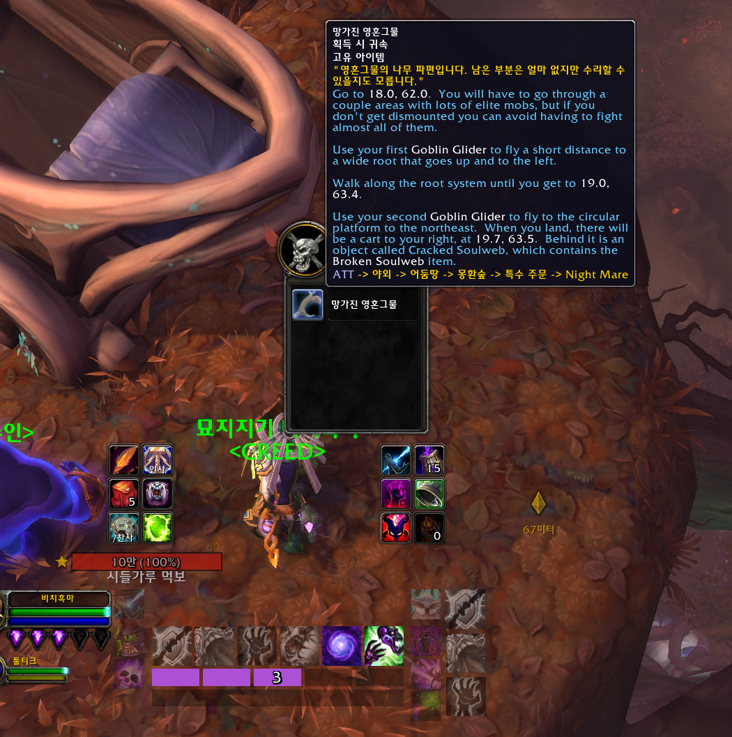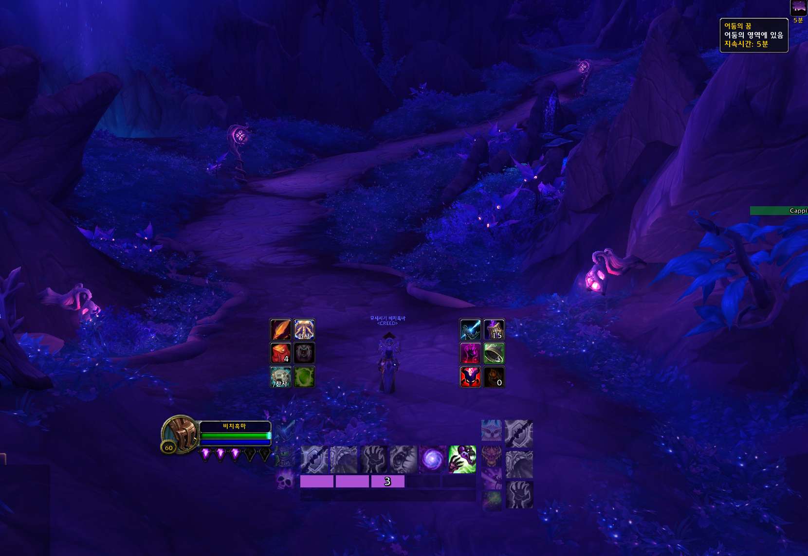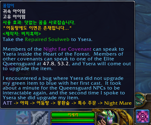 사용하면 어둠의 꿈이라는 버프가 생기고 주위가 어두워집니다. 몽마가 있는 위상으로 온겁니다.