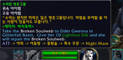 장로 그웨나가 수리된 영혼그물을 만들어 줍니다.