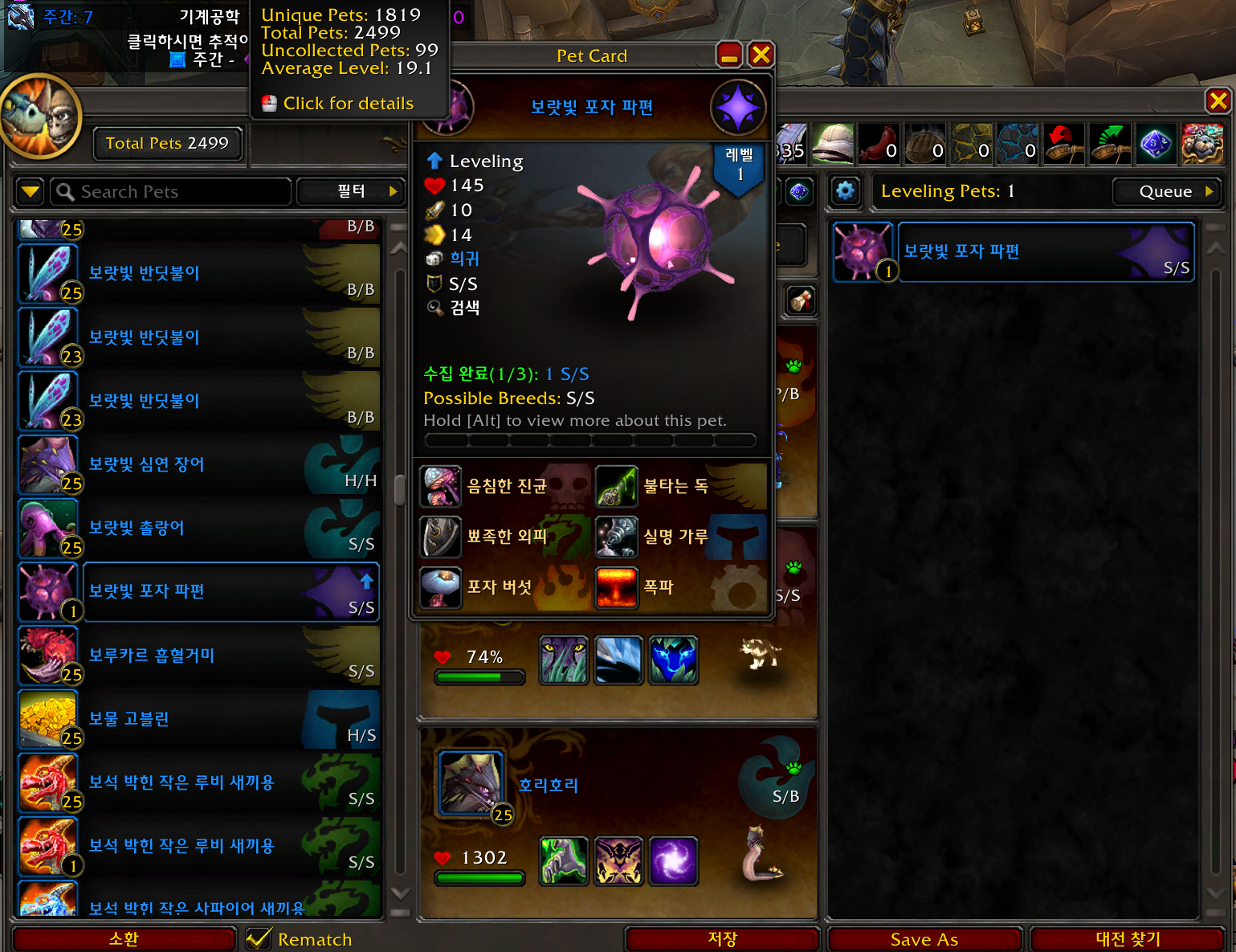 2025.03.05 보랏빛 포자 파편 획득 1819번째 애완동물