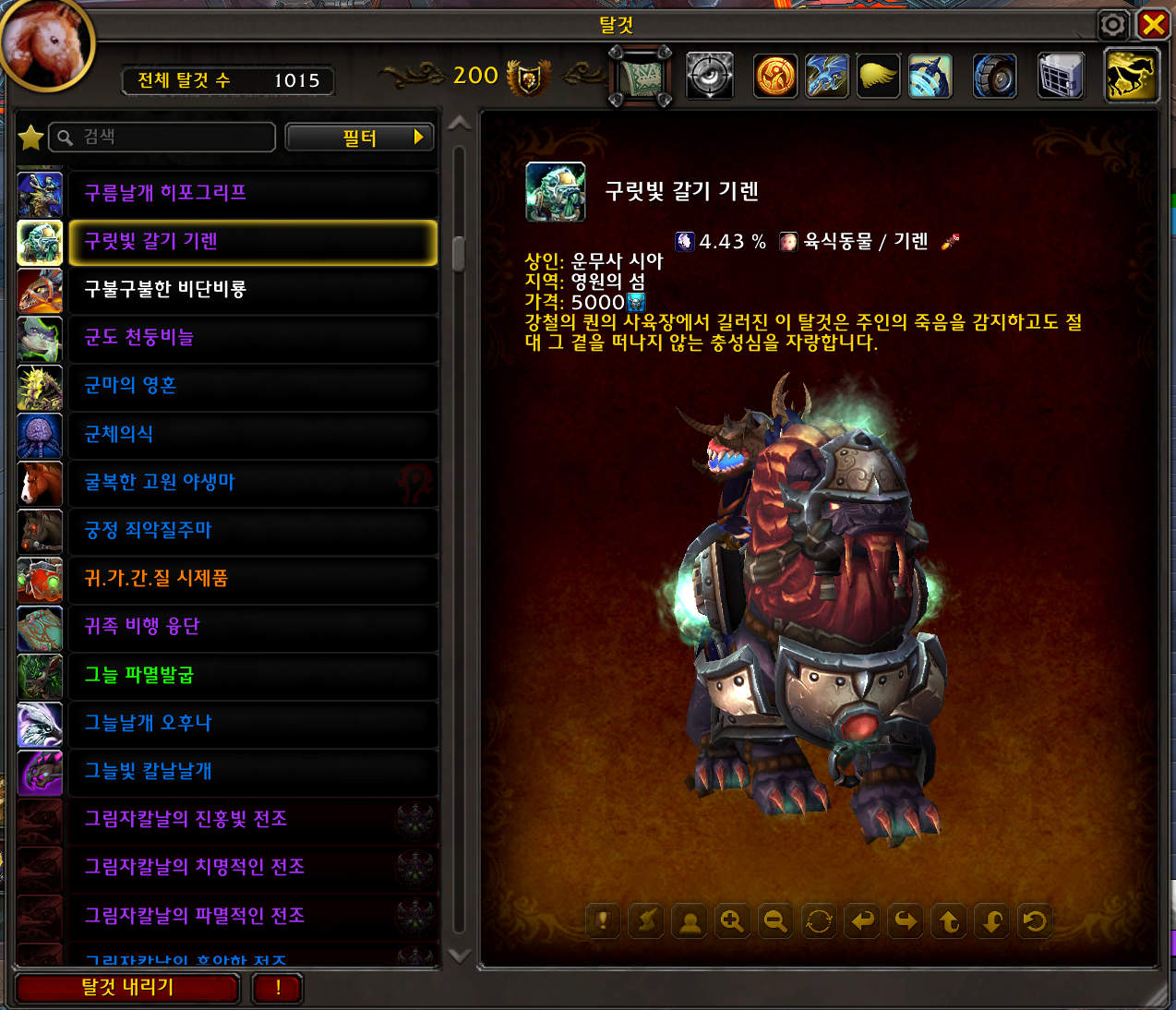 구릿빛 갈기 기렌 탈것은 판다리아 시던주간일때 구매하는 탈것입니다.
