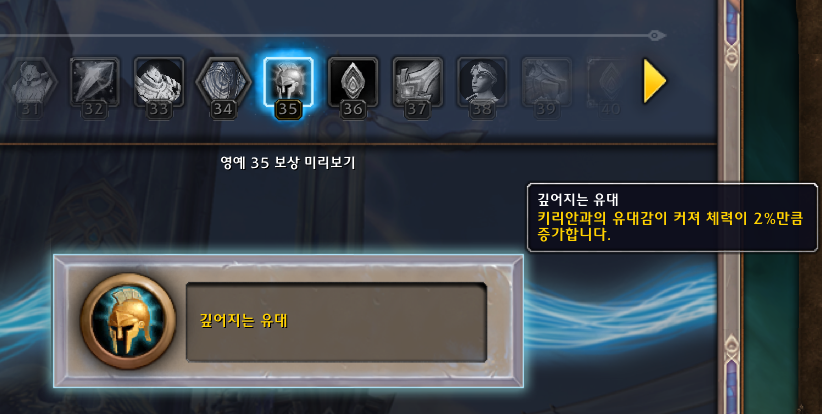 영예 35가되면 체력도 증가하고 영예는 계속해서 올리셔야합니다.