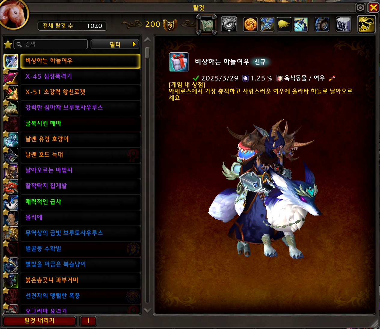 2025.03.29 비상하는 하늘여우 획득 1020번째 탈것