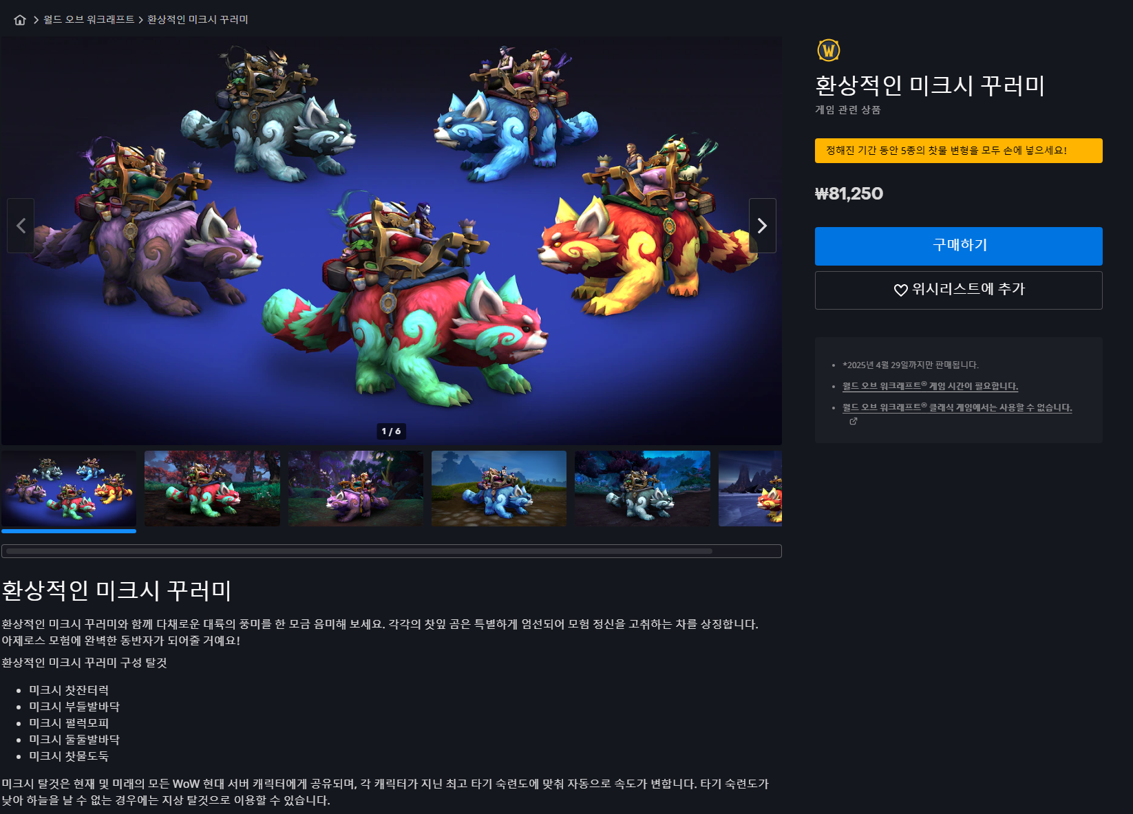 미크시 5종탈것은 블리자드샵에서 구매하는 탈것입니다.
