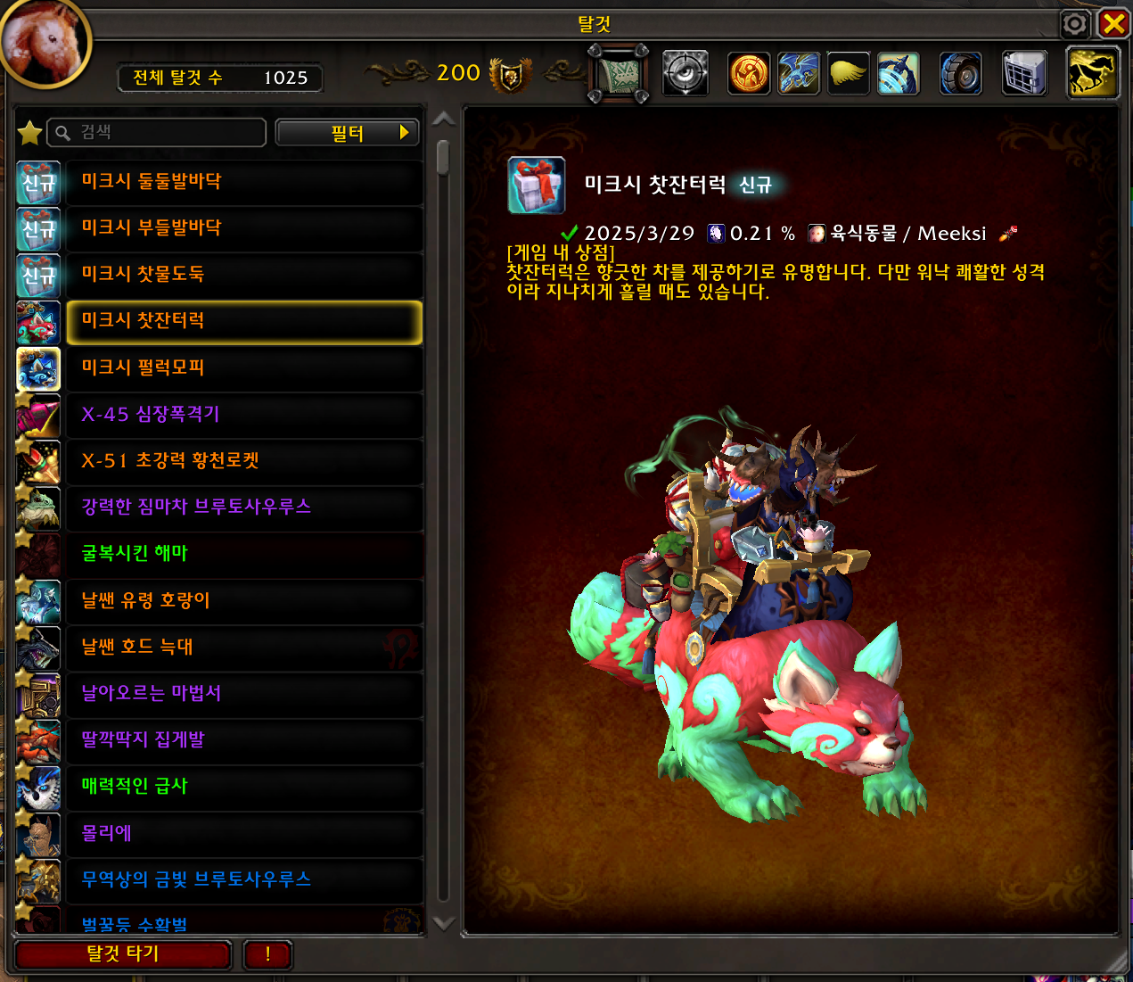 2025.03.29 미크시 찻잔터럭 획득 1024번째 탈것