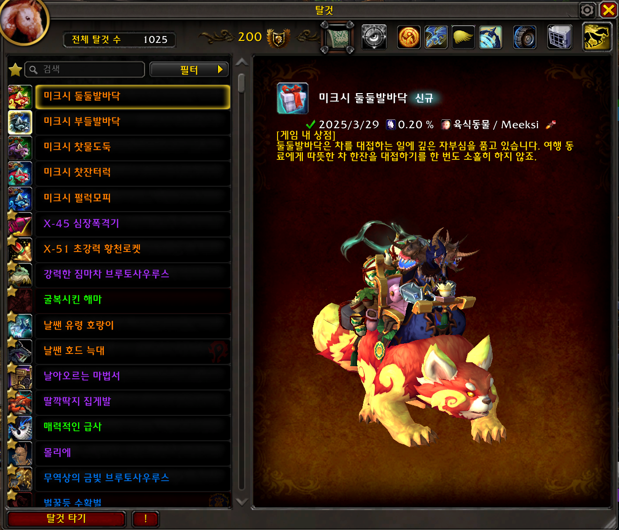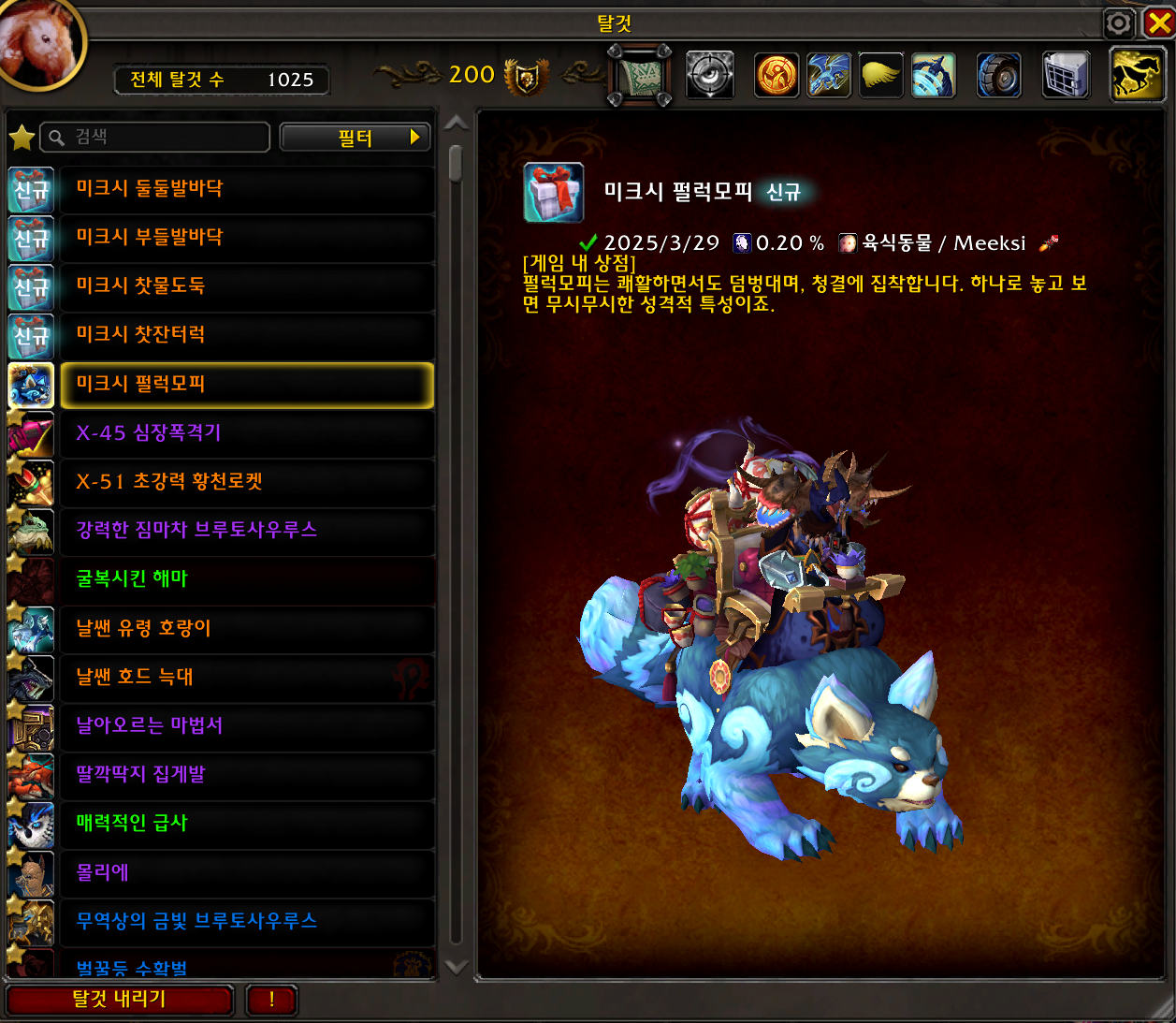 2025.03.29 미크시 펄럭모피 획득 1025번째 탈것