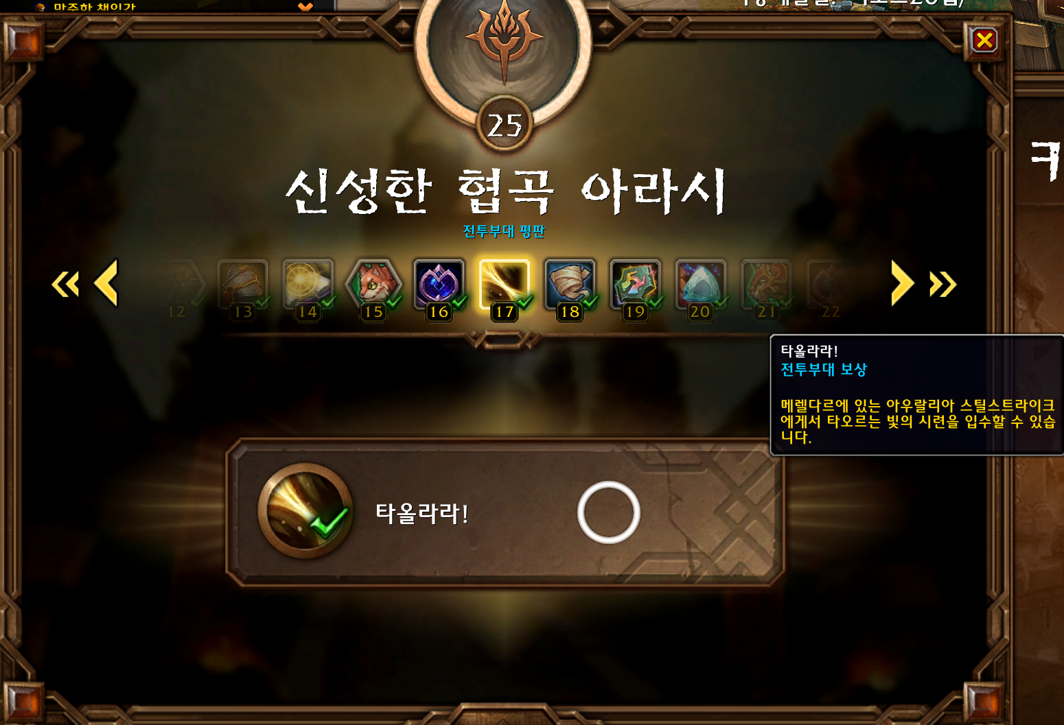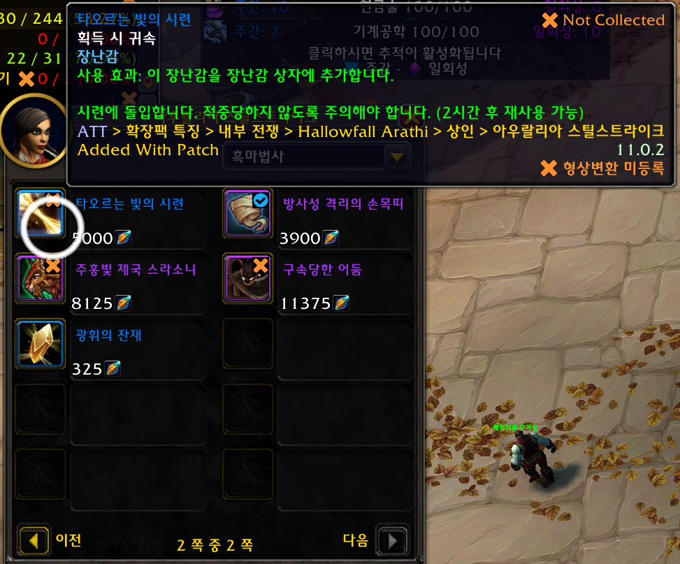 타오르는 빛의 시련 장난감은 내부전쟁 확장팩 장난감으로 신성한 협곡 아라시 병참장교에게 구매합니다.