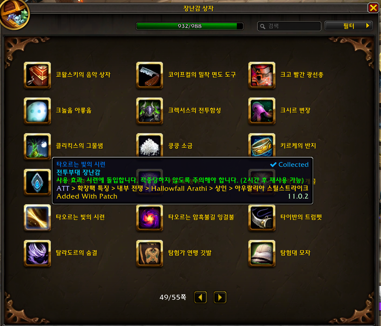 2025.03.30 타오르는 빛의 시련 획득 932번째 장난감