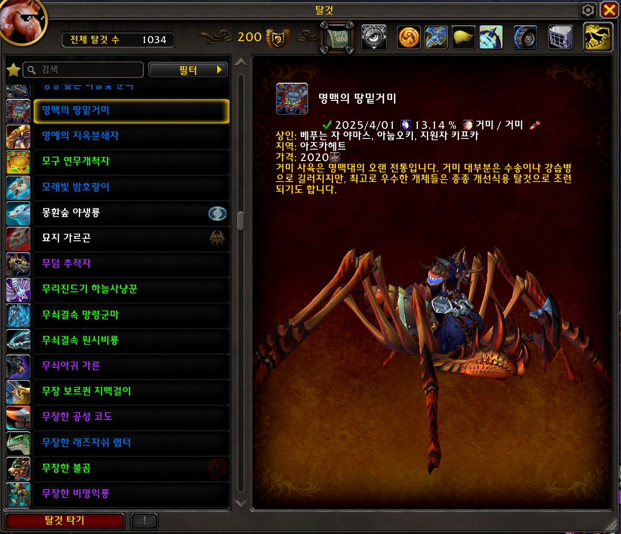 2025.04.01 명맥의 땅밑거미 획득 1034번째 탈것