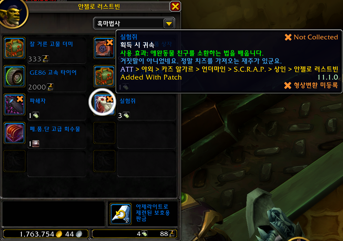 파쇄자 / 실험쥐 애완동물은 내부전쟁 확장팩 애완동물로 언더마인에서 오래된 카자콜라 깡통으로 구매합니다.
