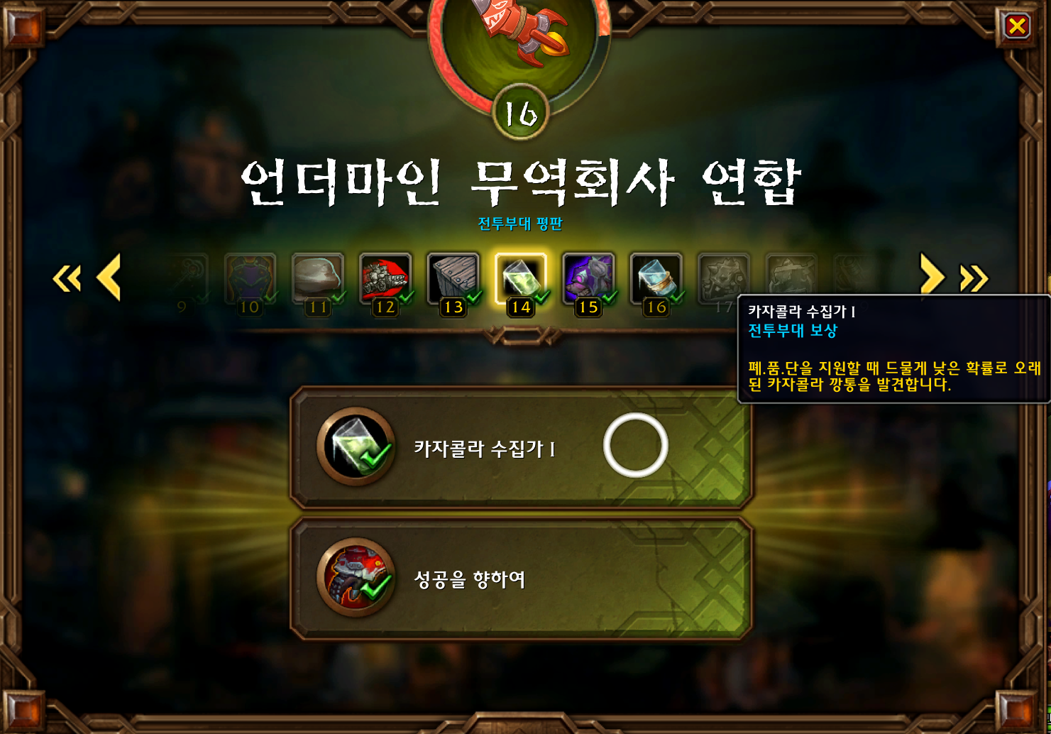 오래된 카자콜라 깡통은 언더마인 무역회사 연합 평판이 14가되면 폐품단을할때 낮은 확률로 획득가능합니다. 각각 1개 3개이기때문에 4개를 모으면 됩니다.