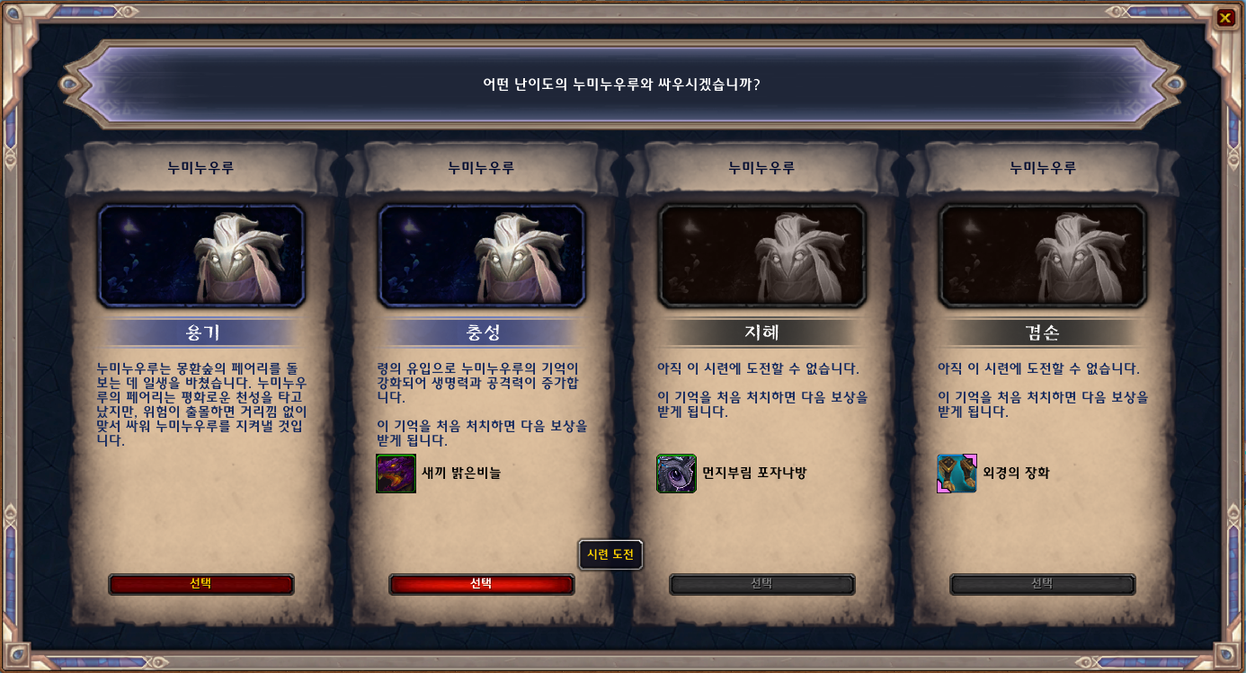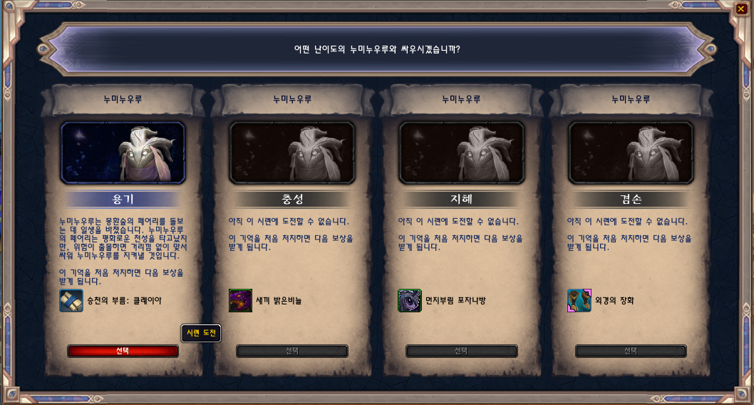 충성난이도 알더린과 미니르를 클리어하면 도전할수 있게됩니다.