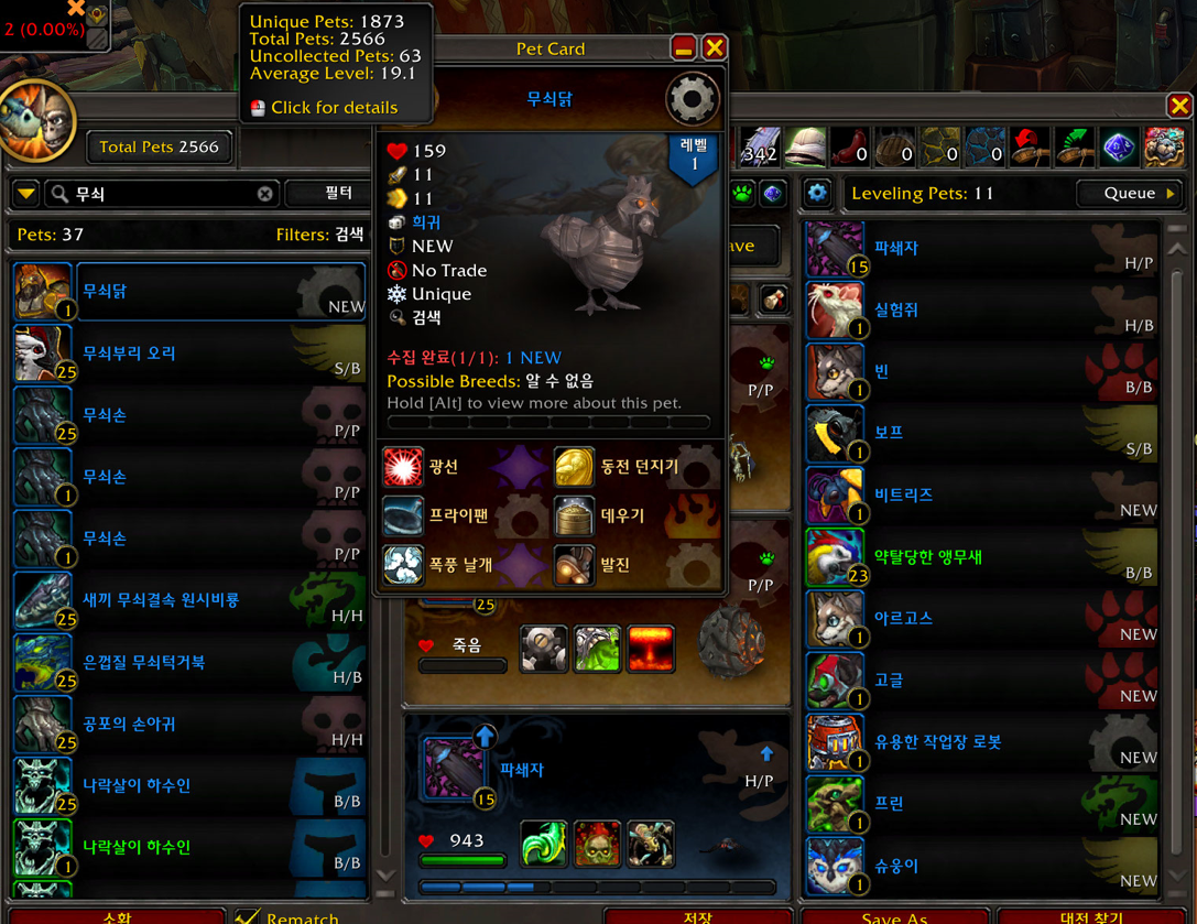 2025.05.14 무쇠닭 획득 1873번째 애완동물