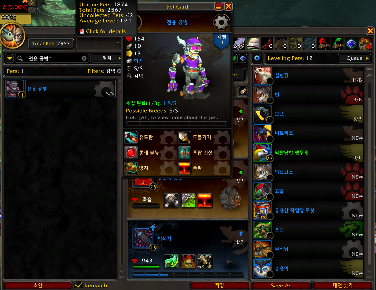 전용 공병 애완동물은 내부전쟁 확장팩 애완동물로 언더마인에서 질주자타고 배달운송 10번 일거리하는 퀘에서 획득가능합니다.