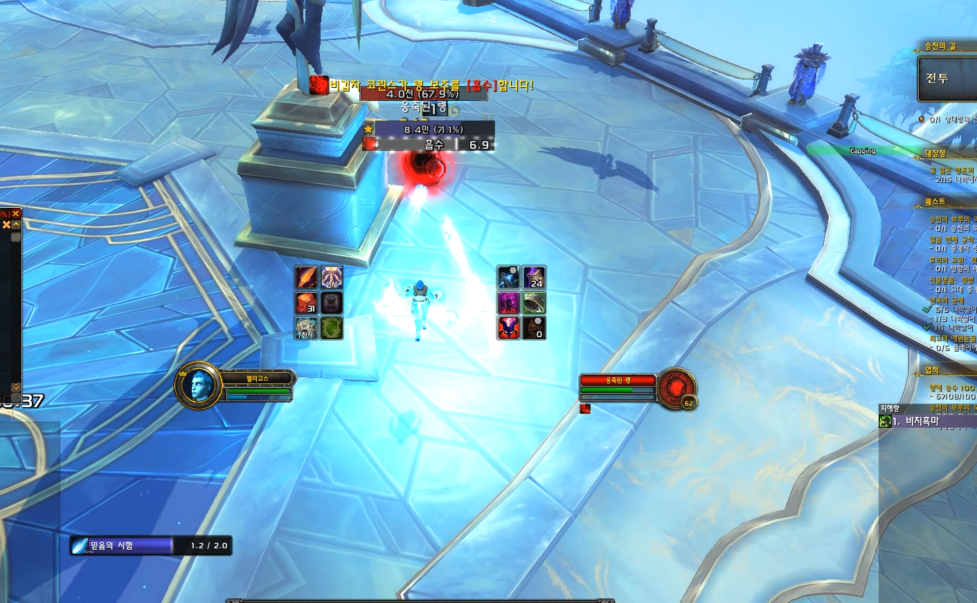 마지막 보스를 잡을때 피가 50%가 넘게있었고 그냥 바닥만 피하면서 령부시고 스킬만 쿨마다 돌리면 전혀 어렵지 않습니다.