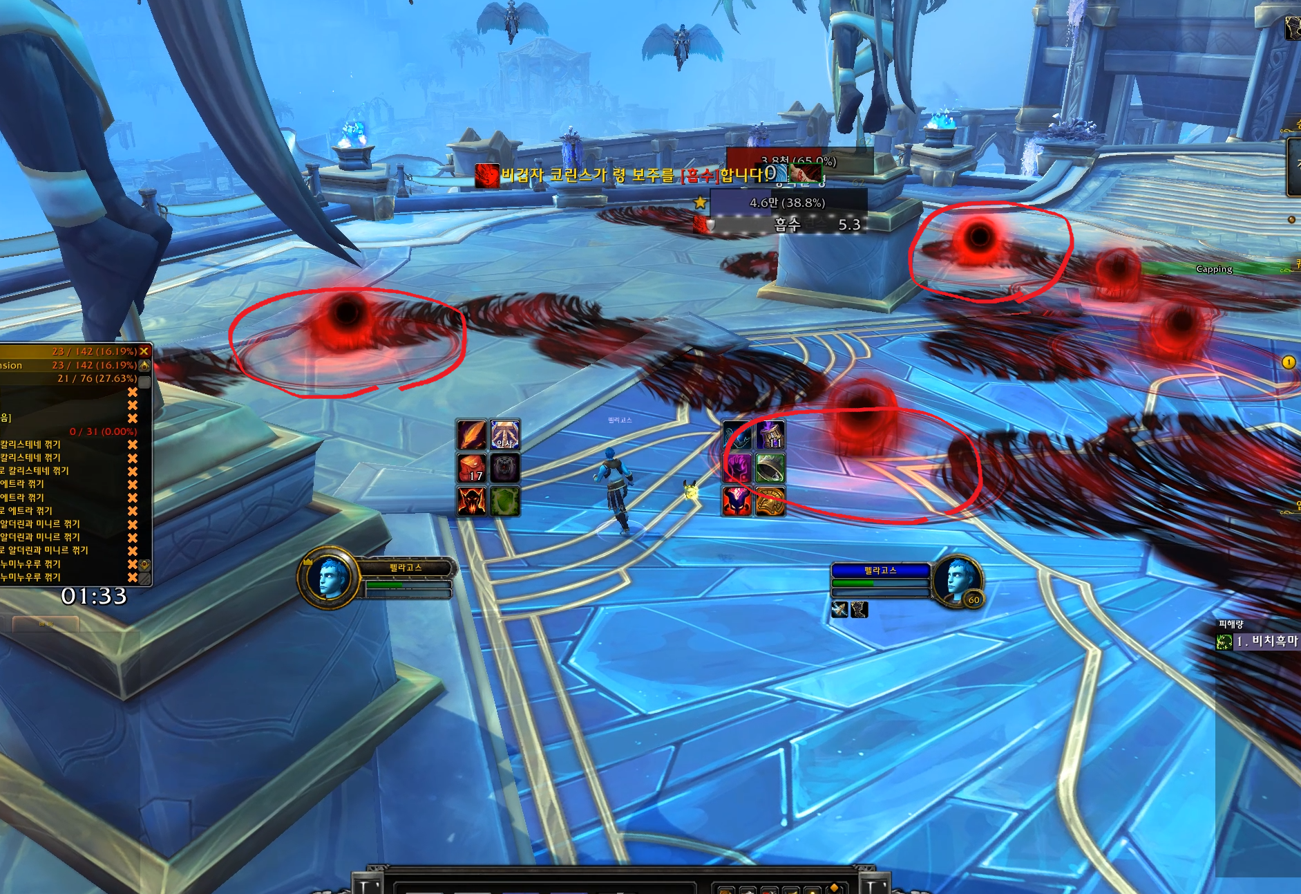 따라서 생각보다 피하기가 어렵습니다. 그래서 안전하게 펠라고스 무적을 황폐의 부채때 사용해주면 좋습니다. 평온의 약병을 쿨마다 사용해주시면 무난히 잡습니다.
