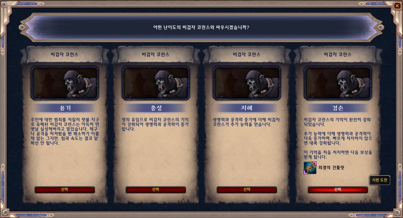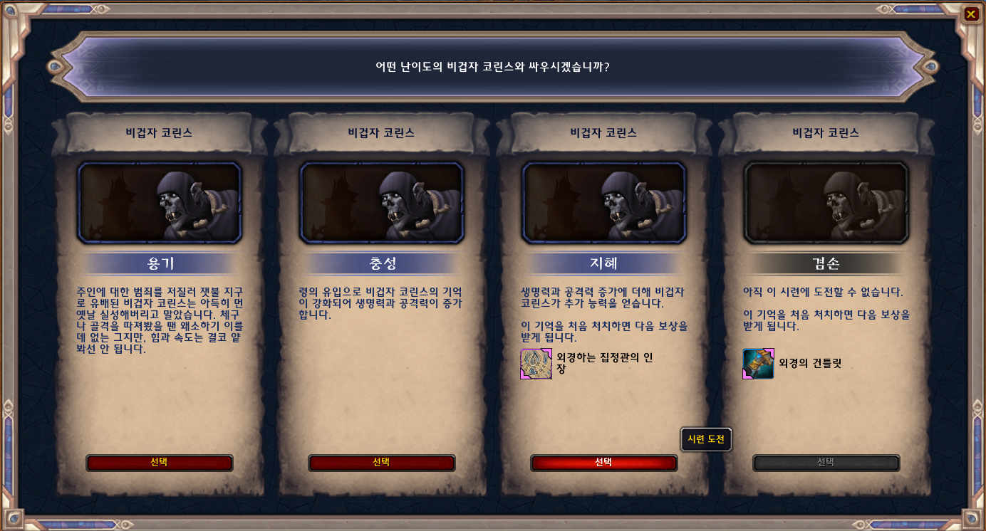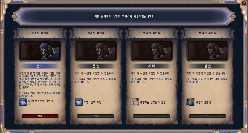 비겁자 코린스 지혜난이도를 클리어하면 외경하는 집정관의 인장을 획득합니다.