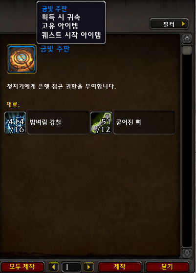 근빛 주판은 밤벼림 강철 16개 / 굳어진 뼈 12개로 만들수 있습니다.