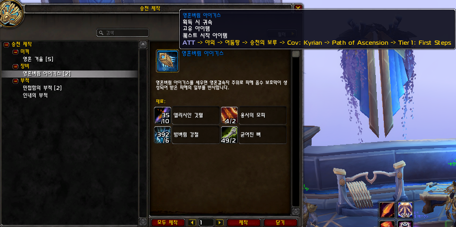 도면 퀘스트를 완료하면 영혼벼림 아이기스 아이템을 제작이 가능해집니다.