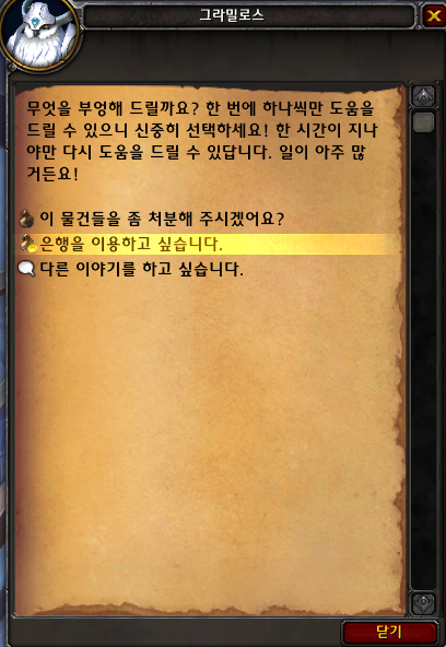 배우게 되면 이런식으로 청지기에 은행기능이 추가됩니다. 1시간 쿨이 있어서 1시간에 1번 사용가능합니다.
