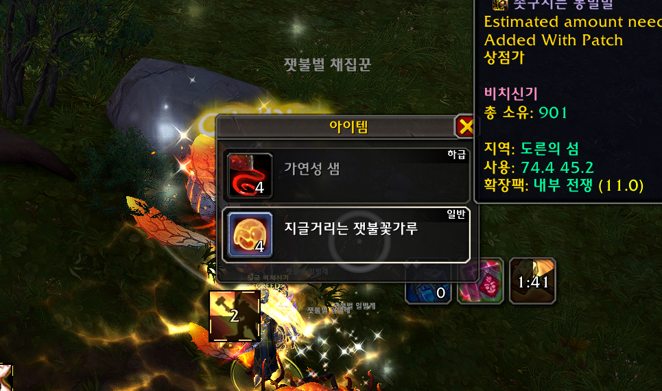 해당몹들을 잡으면 지글거리는 잿불꽃가루를 드랍합니다. 드랍률은 상당히 높은편입니다.