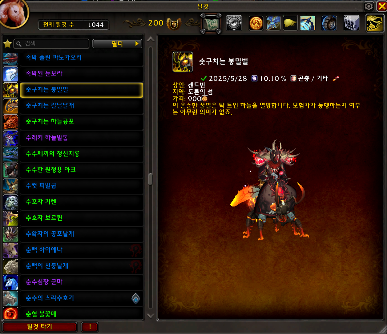 2025.05.28 솟구치는 봉밀벌 획득 1044번째 탈것
