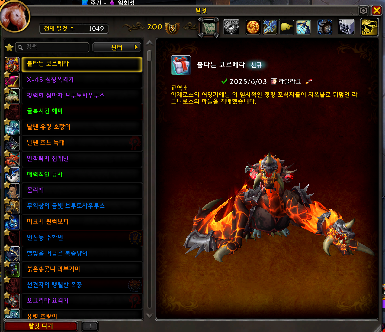 2025.06.03 불타는 코르메라 획득 1049번째 탈것