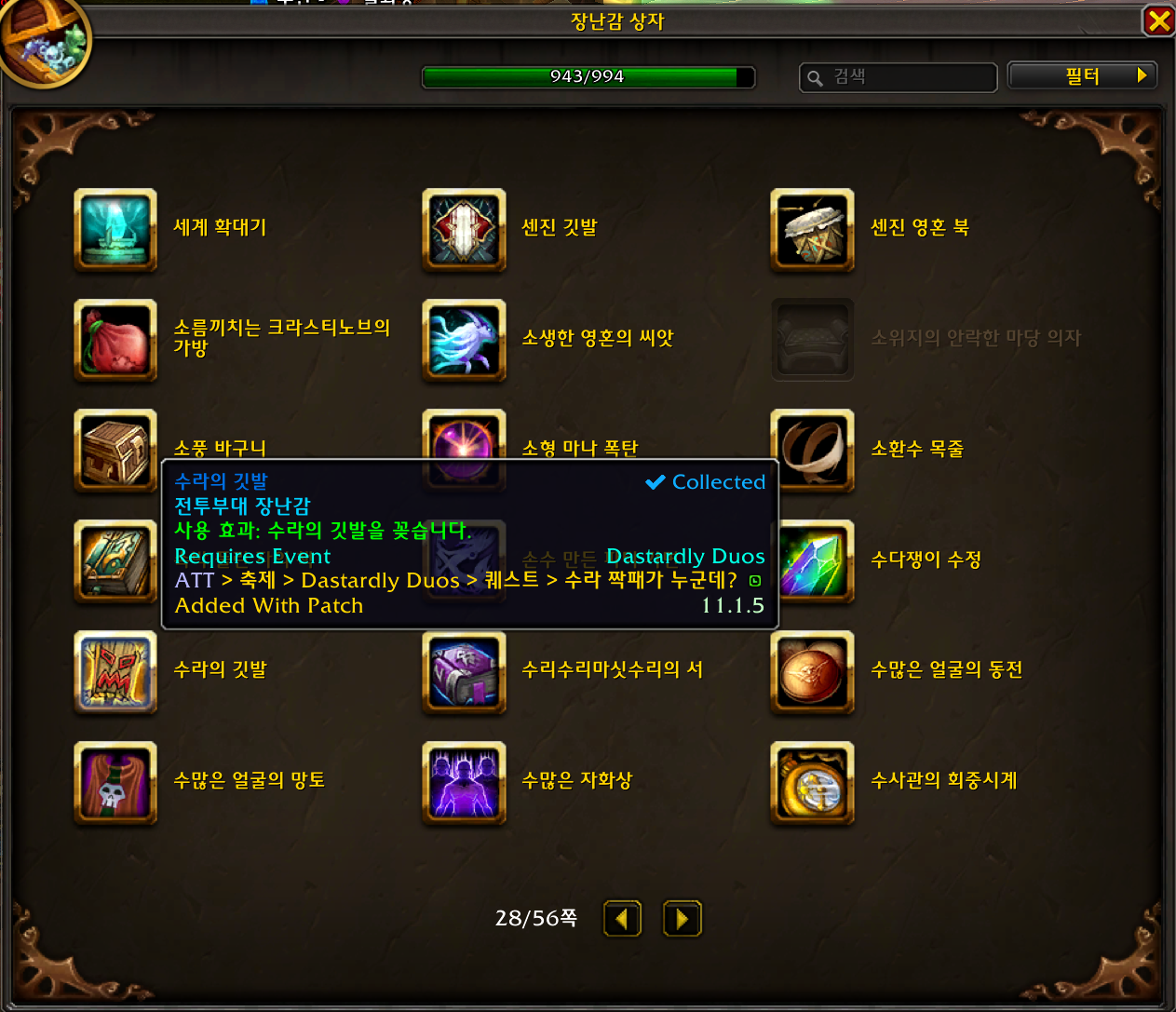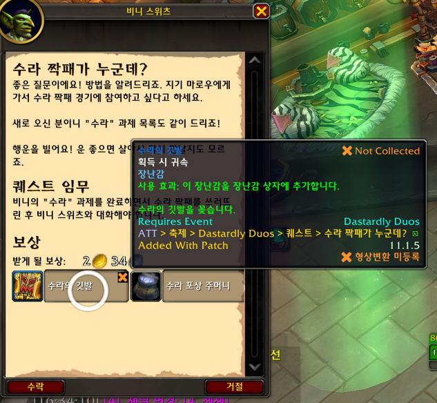 수라의 깃발 장난감은 내부전쟁 확장팩 장난감으로 수라짝패이벤트 입장퀘 완료보상입니다.