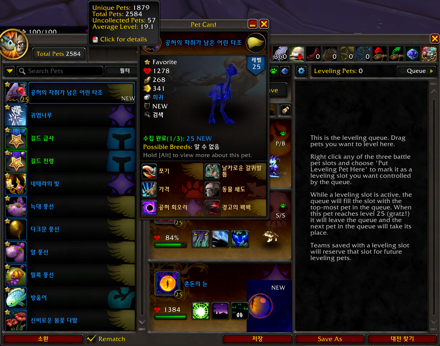 공허의 자취가 남은 어린 타조 애완동물은 내부전쟁 확장팩 애완동물로