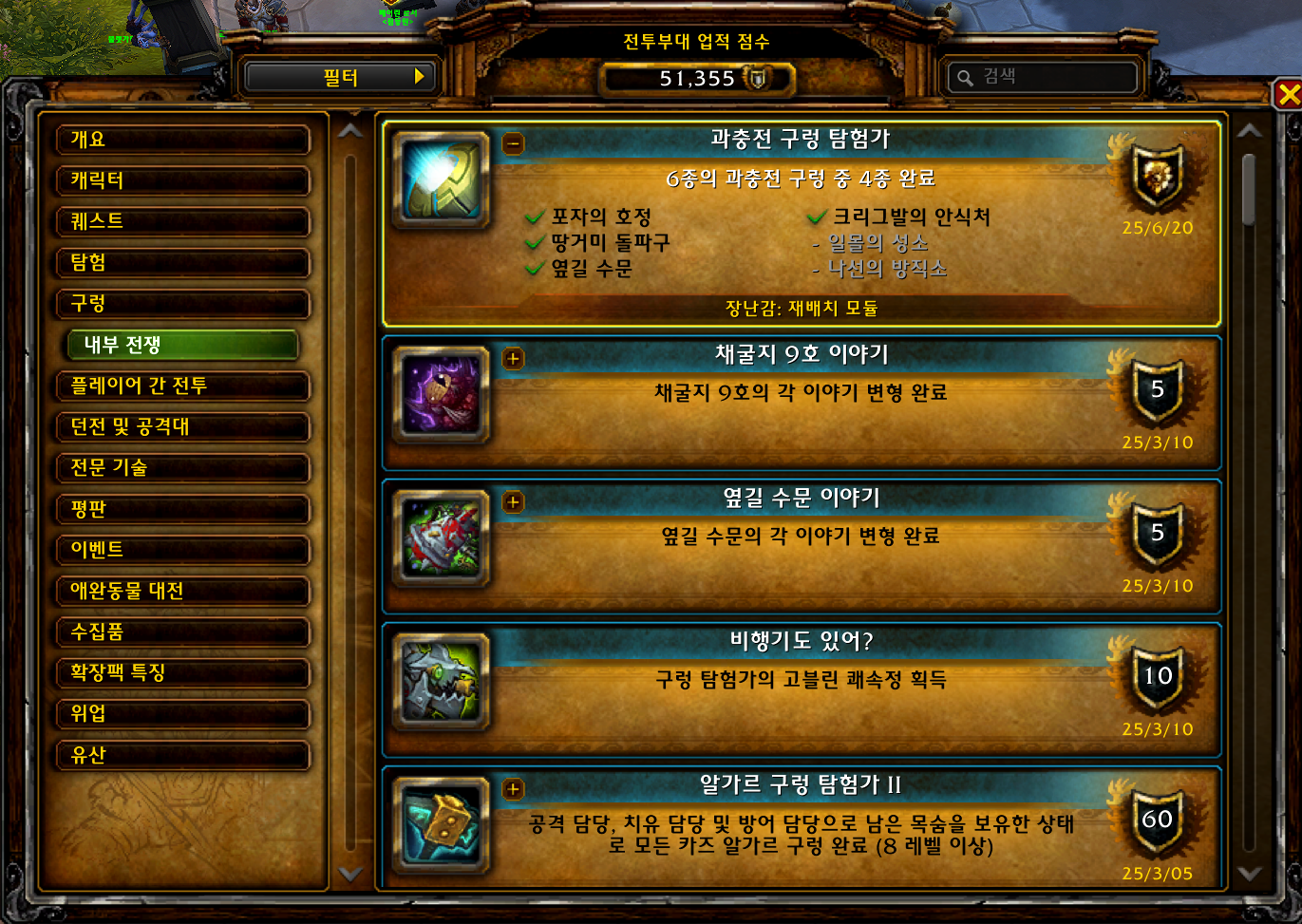 과충전 구렁 탐험가 업적은 내부전쟁 확장팩 업적으로 11.1.7 패치에 추가된 업적입니다.